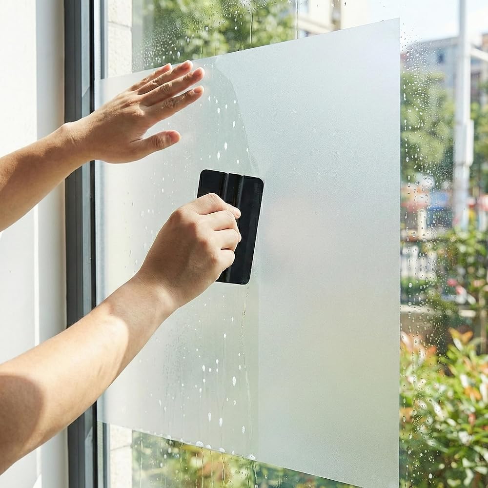 Tips: It will improve the efficency of smoothing to use the scraper while pasting the adhesive paper. There might be stubborn bubbles if you want to paste all on the surface before you smooth.