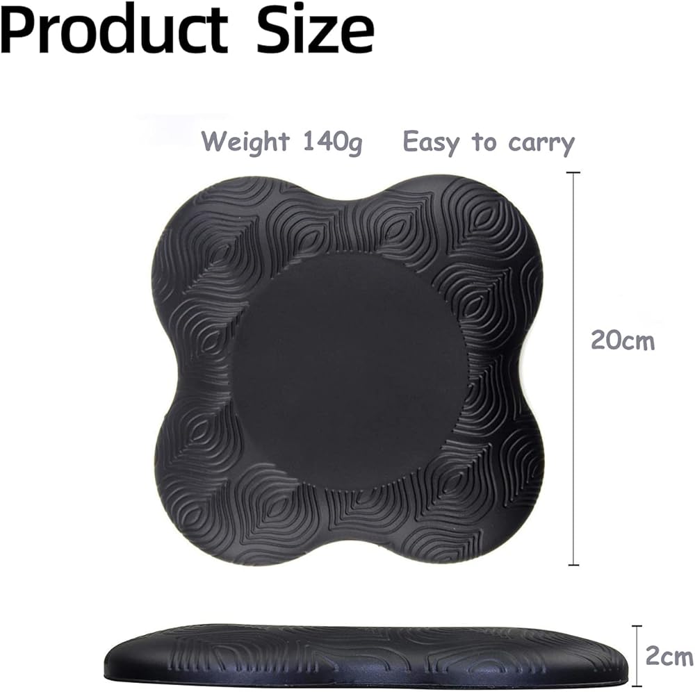 ★Extra Thick Yoga knee pads: Our yoga knee pad and fitness pad is constructed of 15mm thick high density, high quality gel foam that has a non-slip surface to stay in place. Overall knee pad measurements: 7.75” x 7.75” x 20mm thick foam