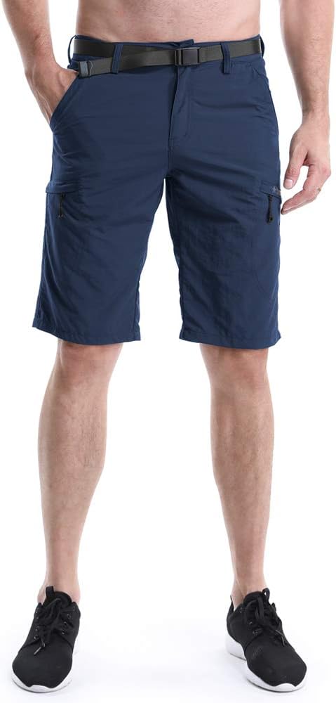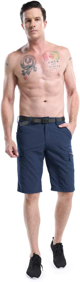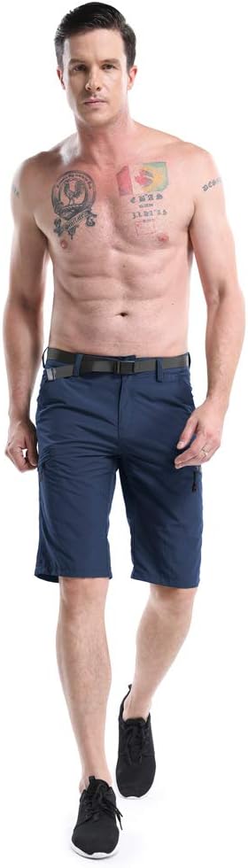 Hidden Hook and loop closure, hiking shorts men quick dry with partial elastic waist for comfort fit, breathe freely, comfortable,belt included.