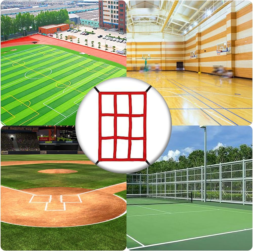 [Durable] The baseball strike target net is made of impact resistant flat woven straps, and the four corner seams are fixed with triangles, making it sturdy and durable.