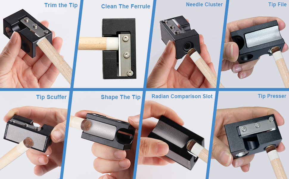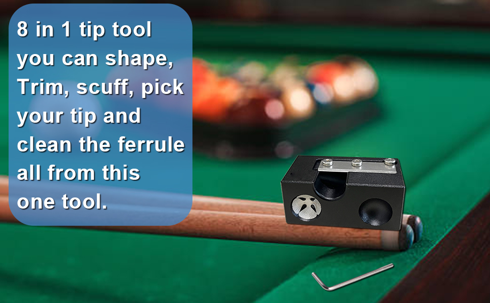 ▶Multi Functional Tool—A great 8 in 1 tool that including shapes,scuffs and pokes the cue tip so it can hold chalk better and helps to avoid miscues.