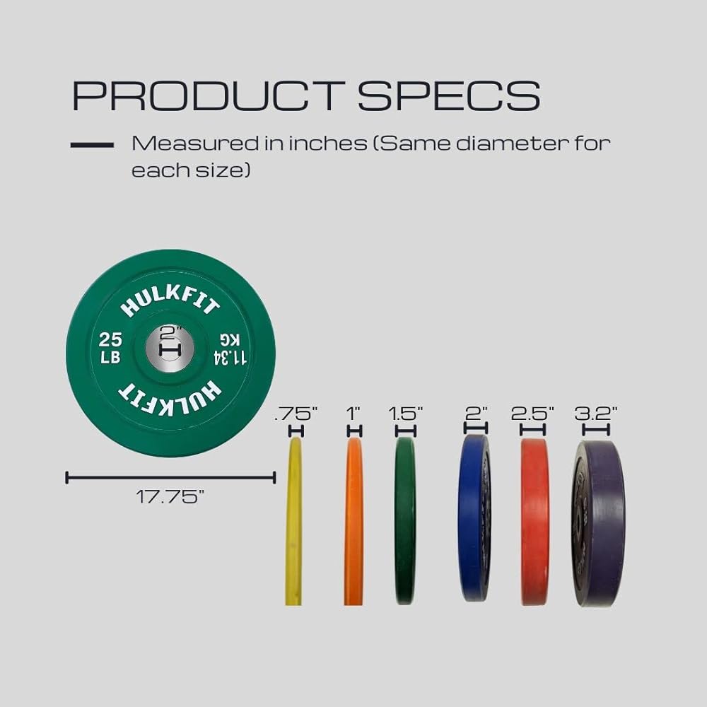 HulkFit 2-inch Pro Series Olympic Style Bumper Weight Plate with Shock Absorbing Low Bounce Rubber for Barbells & Plate Only Strength Training - Multicolor