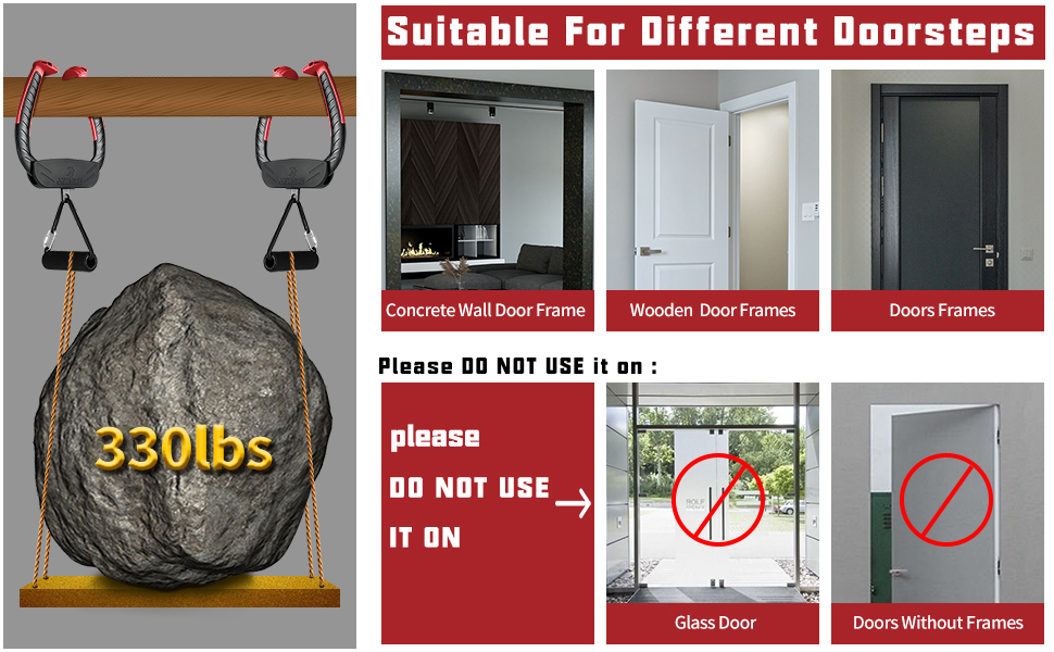 【QUALITY ASSURANCE】After our designers team developed this portable chin pull-up bar, we tested it to its limits.For Over 10,000 full load tests.it proves to be safe and durable. So as long as you strictly follow the instructions, you are assured to use it.