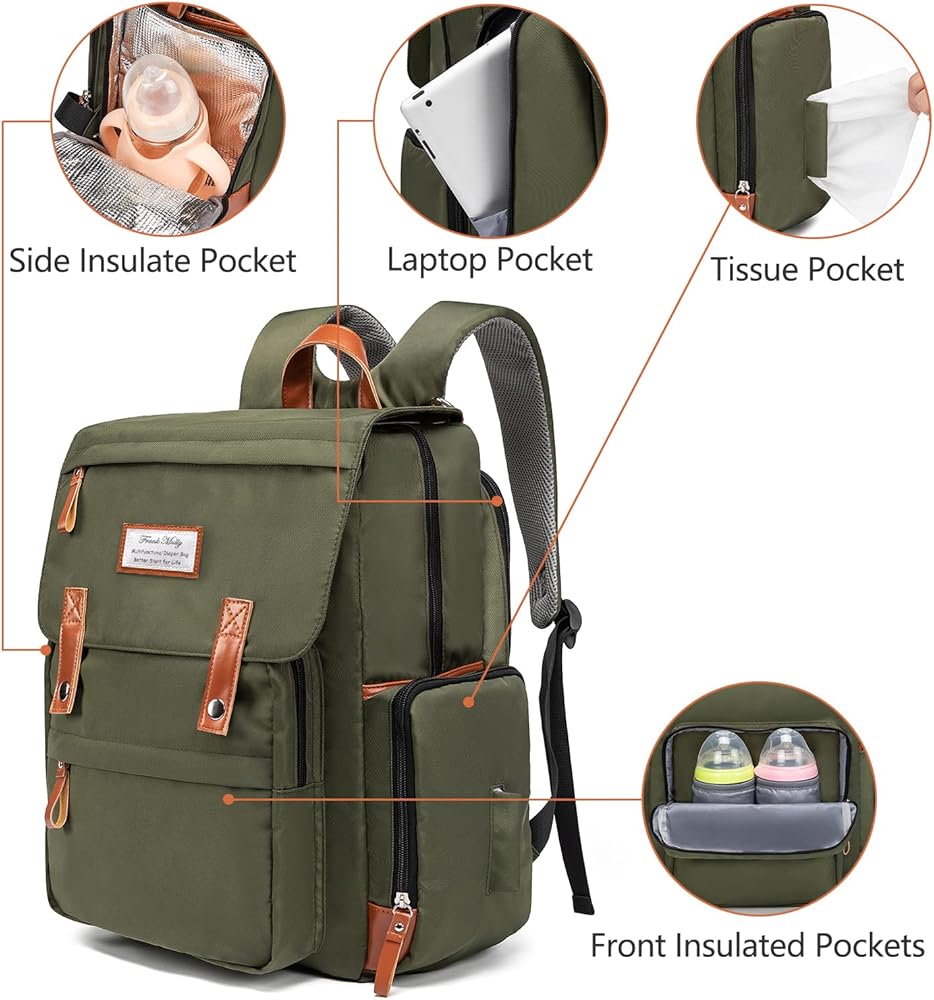 Large Capacity - This diaper bag women backpack have 3 insulated baby bottle holders to keep them warm or cold; a padded laptop/tablet pocket; tissue pocket; mesh pocket organizers and a pocket with keyring. you can put milk bottle, water bottle, clothes, diaper, towel, etc in different separate pockets.