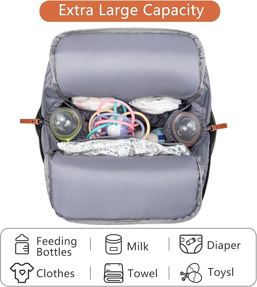 Comfortable Wearing- Cushioned shoulder straps, easy-grab top handle, and convenient stroller straps allow you to wear this diaper bag as a backpack or attach to your stroller; Making it the ultimate hands-free diaper bag.