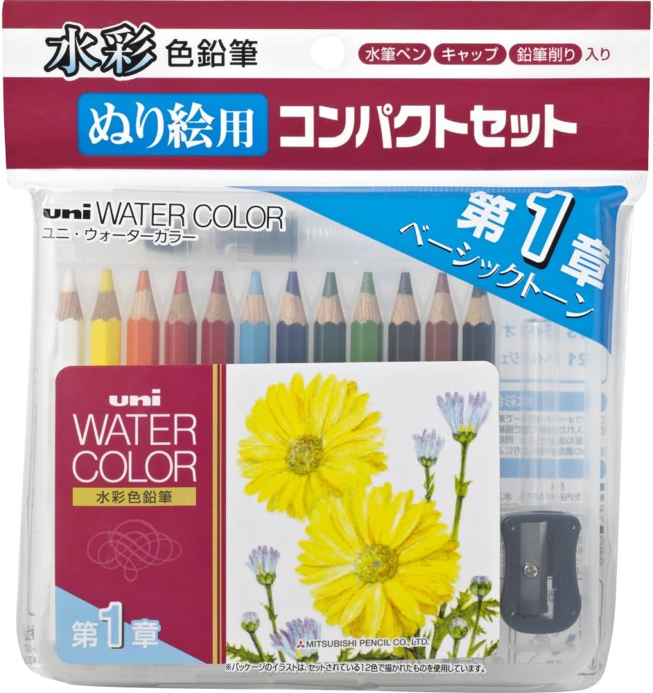Set includes: 12 shabby colors, 1 water brush pen, 1 pencil cap, 1 pocket sharpener