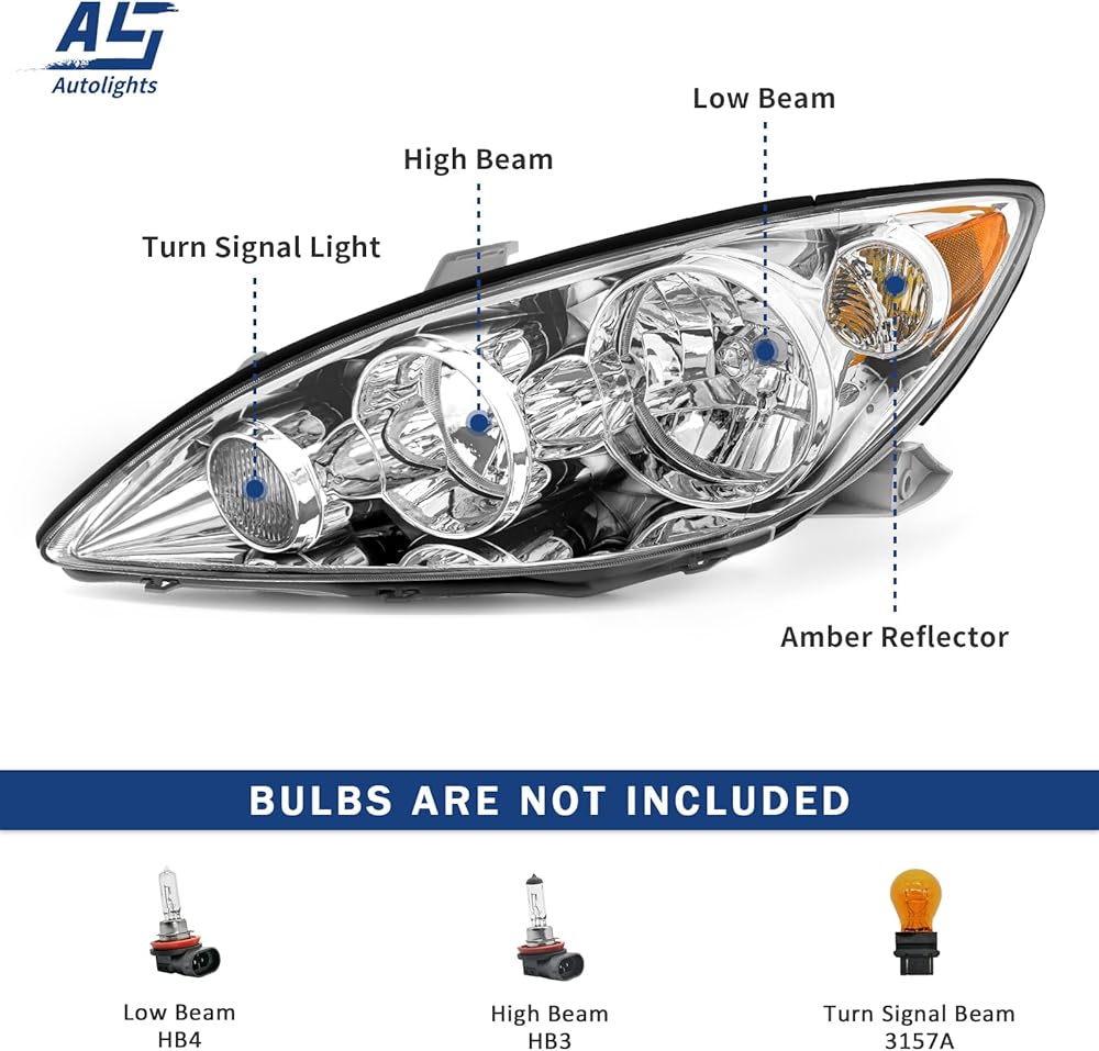 【Direct OEM Fitment】Headlight Assembly Replacement for 2000-2001 TOYOTA CAMRY Headlights(not compatible with Solora models).High Beam:9005,Low Beam:9006(Bulbs not included)Only Fits LE/XLE, Not Fits SE
