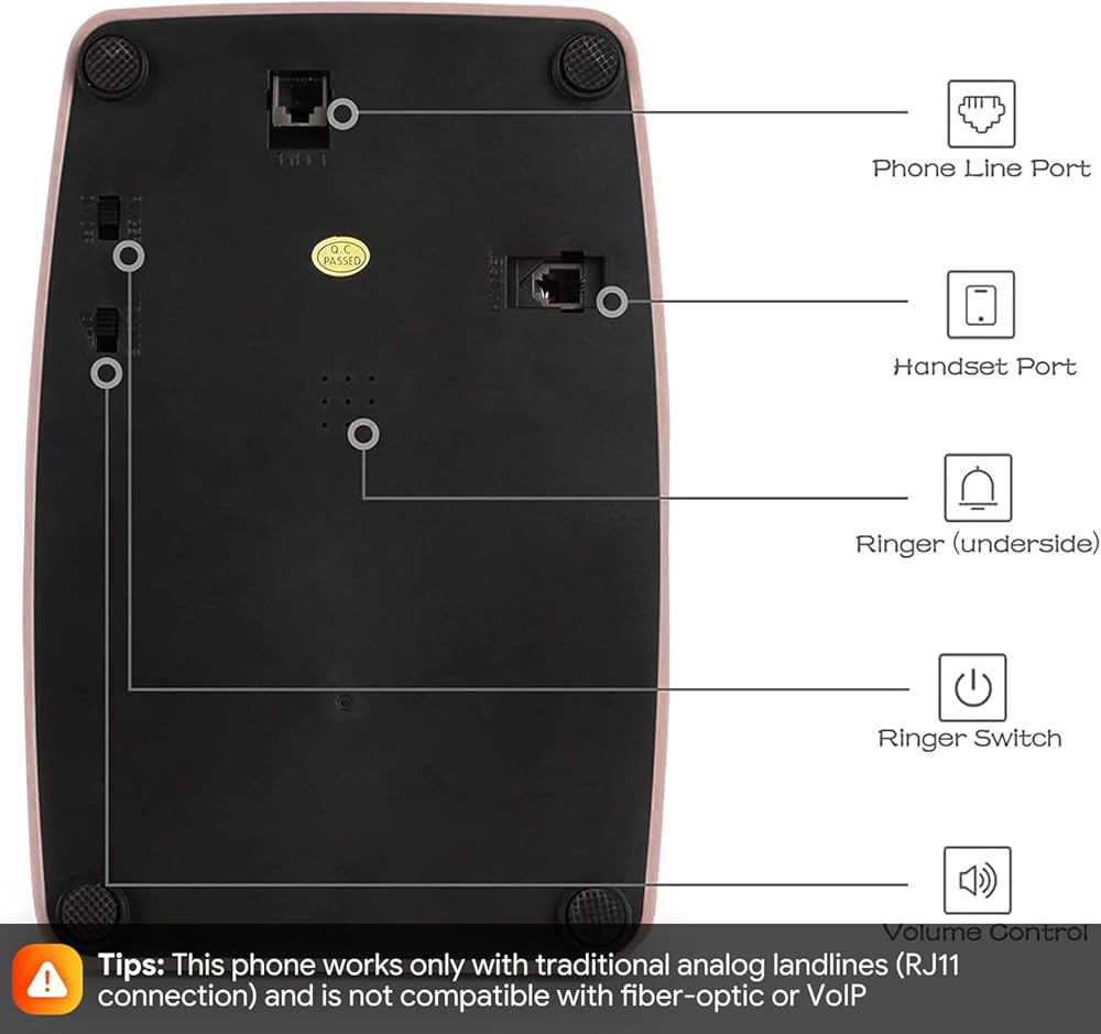 【ADJUSTABLE RINGER DESIGN】: Features a traditional chime mechanical ringer with adjustable volume control at the back of the telephone, so you can decrease it during the night, allowing you to be in full control of the sound. The ringer can also be switched ON / OFF