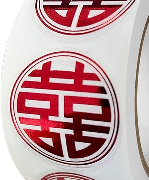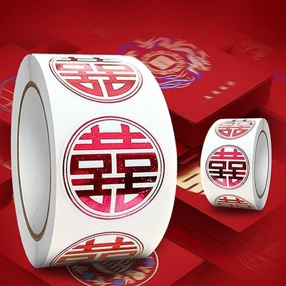 500 Pieces Roundness Chinese Red Double Happiness Roll Stickers for Envelopes, Decoration Supplies for Wedding, Cards, Gift Bags, Parties Presents Greeting Card Mailing Envelopes,Booklet Envelopes