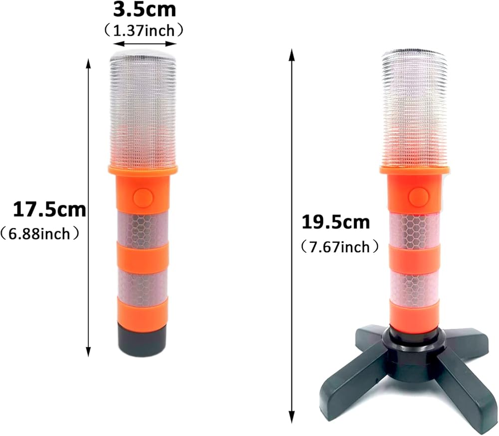 GREAT VISIBILTY: Super bright, the lights can be seen from one mile away, especially at night, also perform well in rainy or snowy weather. So the road flares are helpful when in a roadside breakdown or other roadside emergencies.