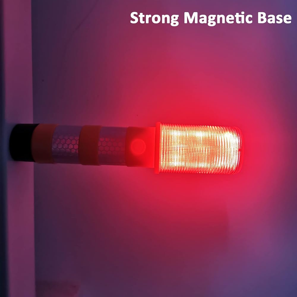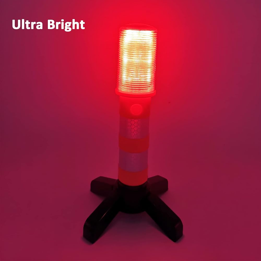 3 LIGHTING MODES: Red flashing light, solid red light and white light ( on the top of the roadside flare).