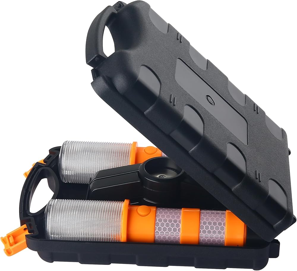 EASY TO STORE: These emergency flares and two stands come in a compact and flat storage case, which it is a good option to store it in a trunk or tool compartment.