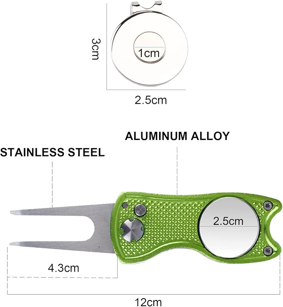 1 PC Divot Tool with Ball Marker and 1 PC Strong Magnetic Golf Hat Clip to Keep Ball Markers Handy.