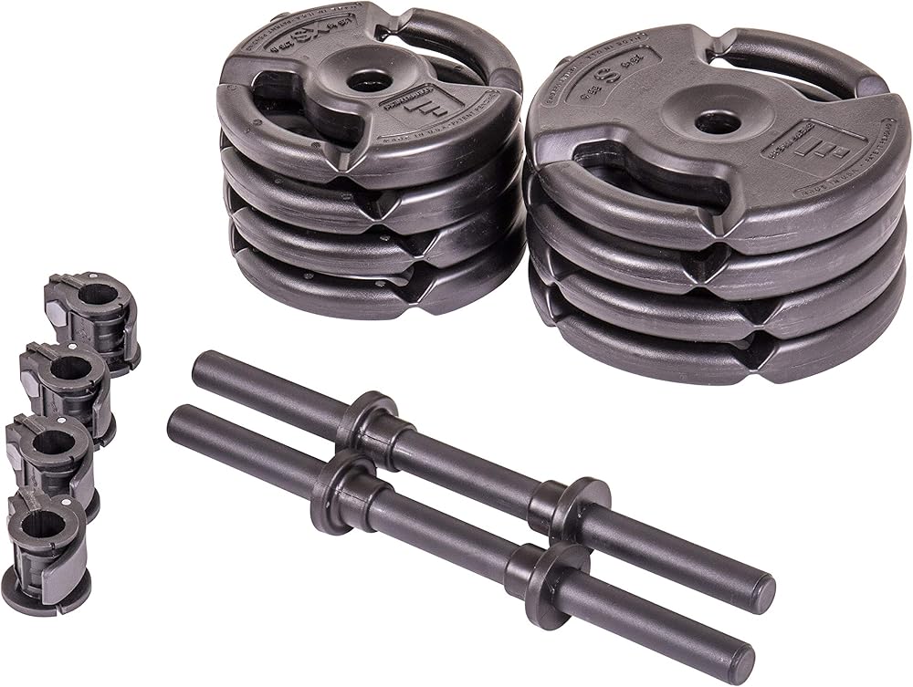 The 4-weight Adjustable Weight Deluxe Barbell Set is the perfect set for everyone from beginners to serious exercisers doing group power or bodypump workouts. It has a total weight of 60 lbs. (including the bar).