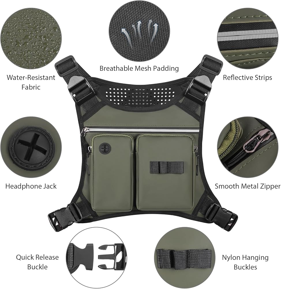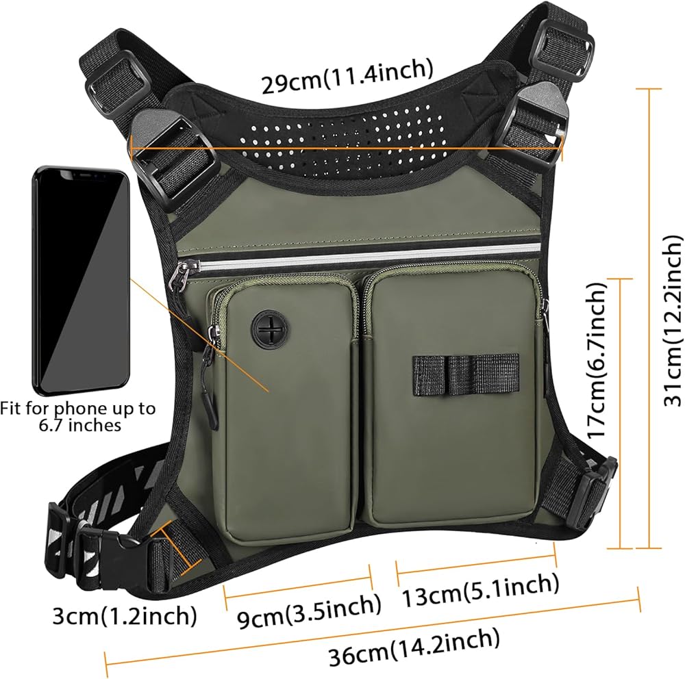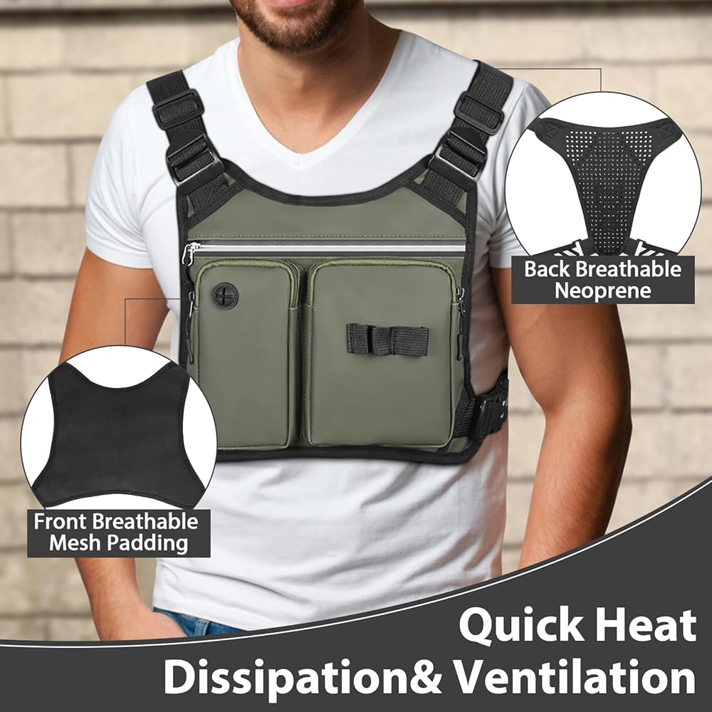 【Utility Chest Pack】This reflective EDC chest rig pouch is perfect for workouts, running,jogging,dog walking,hunting,fishing,boating,surfing,cycling,hiking,skiing etc even in the night.The vest bag keeps your hands free and offers convenient access to your items during outdoor activities or workouts.