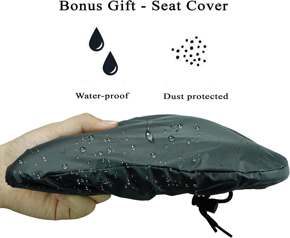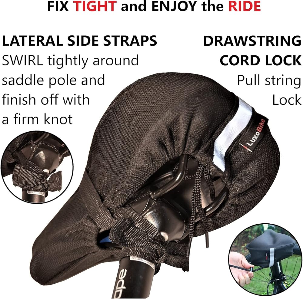 What's more, LuxoBike gives a free gift for the outdoor road or mountain bike enthusiast, a water and dust resistance seat cover to protect it from the elements.