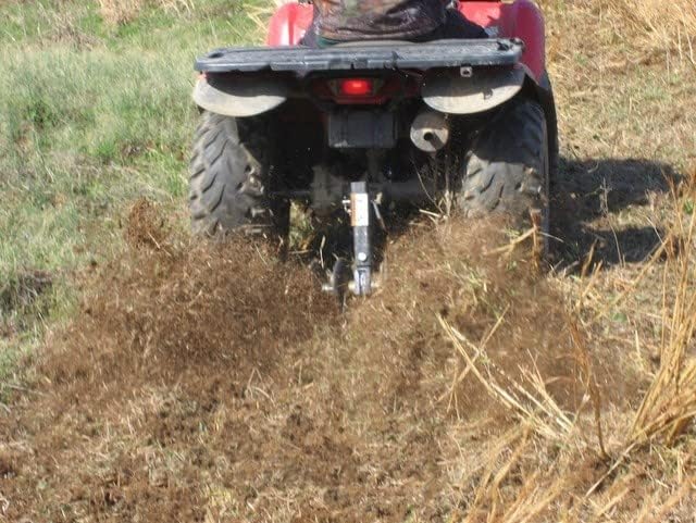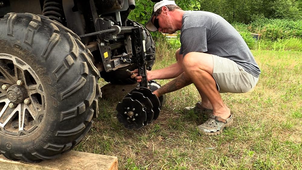 Tears up the ground quickly and easily. - Turn your ATV into a hard-driving plow! And turn a 2-man job into a solo do-it-yourselfer! The GroundHog MAX is designed to go anywhere your ATV can go and is ideal for food plots, gardening, landscaping... even small farm chores. Put it to work and admire the results. It's also great for weed control and fire defense, especially in remote areas. It's built tough to last and it gets the job done quicker than pull behinds. Doesn't take up much room in storage, either. And there are no ratchets to rust or tires to go flat or succumb to dry rot. You'll wonder how you survived so long without one. 21" cutting width; Operates at speeds of 5-7 mph vs. 2-3 mph of normal pull behinds; Topnotch maneuverability allows you to plow anywhere your ATV/UTV will take you; ATV and rider's weight force disc into the ground with up to 800 lb. of plowing down force, no need to add extra weight; More down-force, less steel equals an aggressive cut; Use in 2-wheel or 4-wheel drive (use 4-wheel drive for more aggressive cuts); Use with independent rear suspension or straight axle setups; Discs are assembled on a 3/4" steel axle; Axle is encased in a glove-fit 1" steel pipe between each disc blade; Graduated notched discs (8", 9" or 10") plow faster and penetrates deeper; Fully assembled plow with easy to replace bearings; Adjustable height control in 1" increments; Hassle-free transport without a trailer; Allows the use of reverse with plow engaged (on most units) for small, tight places; Includes hitch kit to get you up and running right out of the box; Plow in looping circles and figure eights for best results; GroundHog Max will fit most ATVs, Quads, UTVs, Wheelers, 4-Wheelers or Side-by-Sides; Note: Will not fit Yamaha "Bear" Series; Material: 1/4 wall steel; Cutting Width: 21"; Weight: 46 lbs.; Mfg. Number: GHMAXUMK.