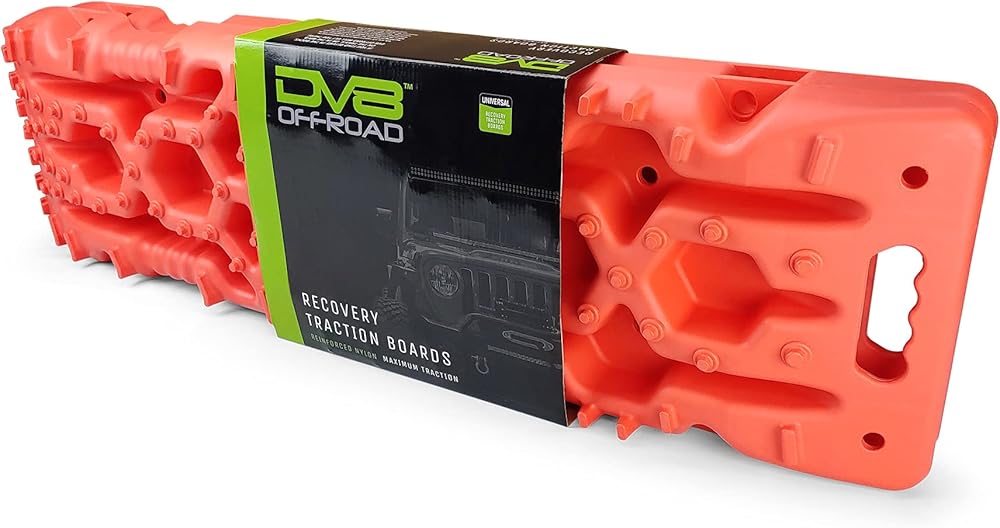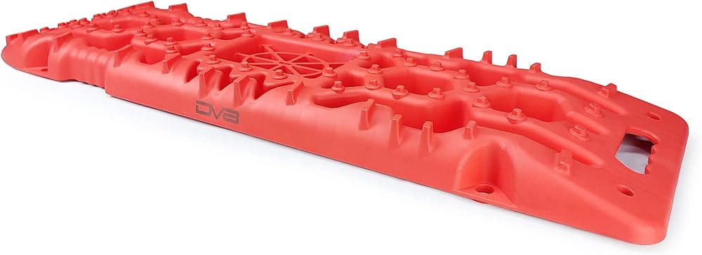 DESIGN: 42" long x 12" wide reinforced nylon board with deep channels for water, mud or snow to drop below the tire line and raised traction knobs on top for the tire to grip while moving along