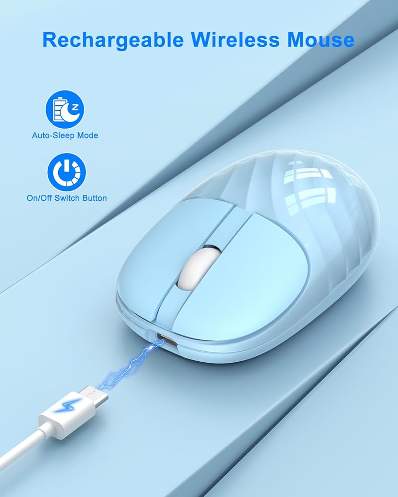 【Rechargeable Wireless Mouse】Mouse is rechargeable via supplied USB-C cable, and a single charge will last up to 2-6 months.