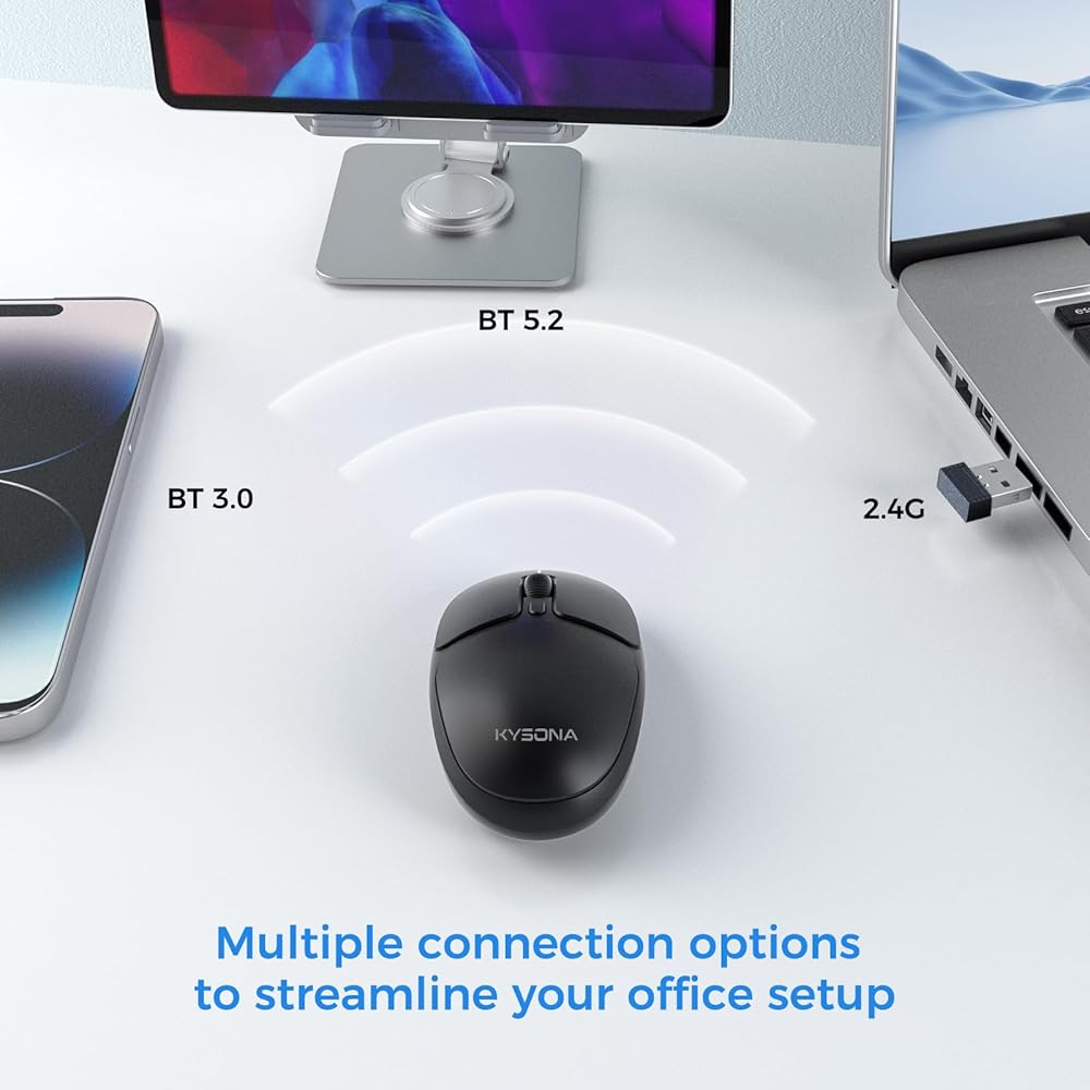 [Dual-mode Connectivity]Offering dual-mode connectivity options, supporting Bluetooth dual-channel (BT3.0, BT5.2) and 2.4G connection. Whether connecting to your computer, tablet, or other devices, it seamlessly switches, ensuring a smooth and uninterrupted connection experience.