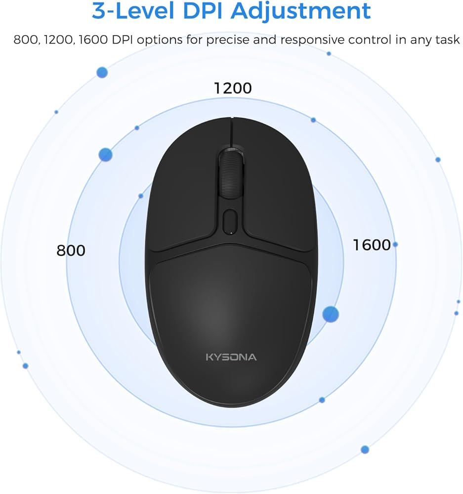 [Multi-level DPI Adjustment] 3-level DPI adjustment feature (800, 1200, 1600), you can easily customize the mouse sensitivity based on the requirements of different tasks. Achieve more precise control, adapting to a variety of office scenarios.