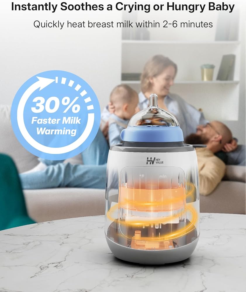 FAST WARMING: When your baby is crying at night, the HYEVALUE Bottle Warmer can heat cold milk to the appropriate temperature in just 2-6 minutes, reducing waiting time and helping you soothe your baby quickly. With HEYVALUE baby bottle warmer, you can enjoy a better life!