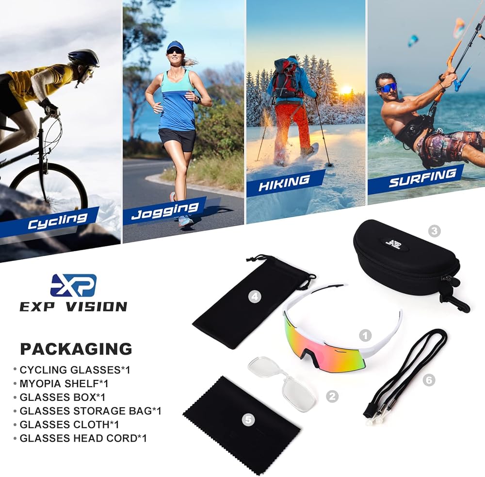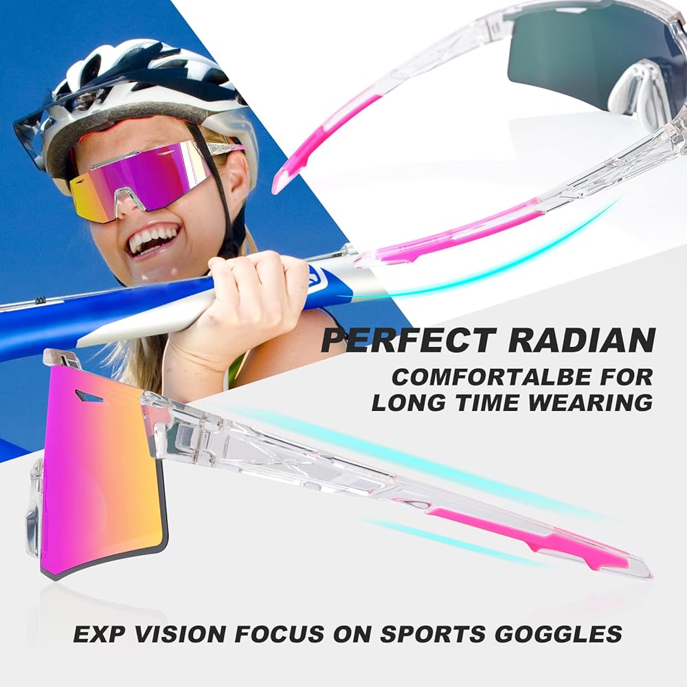 Increased Visibility : The curved and wider lenses of the EXP VISION sports cycling sunglasses provide greater visibility, especially during high-speed cycling. The low air resistance of the curved lenses makes them perfect for any outdoor activity.