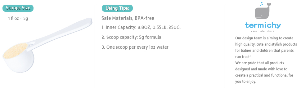 Intimate design: With the spaced layer for spoon, spoons and formula can be stored in different places to maintain hygiene. Infant formula dispenser with separate design helps you scoop each spoon of milk powder accurately to avoid wasting.