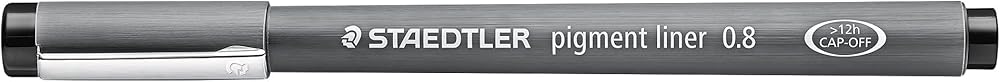 The Staedtler pigment liner is a high quality fineliner for writing, sketching and drawing. The pen has a long metal tip, making it ideal for use with rulers and templates. The pigment ink is indelible (in accordance with ISO test 14145-2), lightfast and waterproof. The ink is erasable when used on tracing paper and the ink does not bleed when highlighted. The pens come supplied in the practical and stylish stand-up Staedtler box. With the Staedtler box you simply open, stand it up and start writing! The unique Staedtler box is so practical and just as ecologically efficient: Without the need for additional external packaging, it serves as a practical storage box and clever pen holder at the same time. The pack contains 8 pigment liners in assorted line widths.
