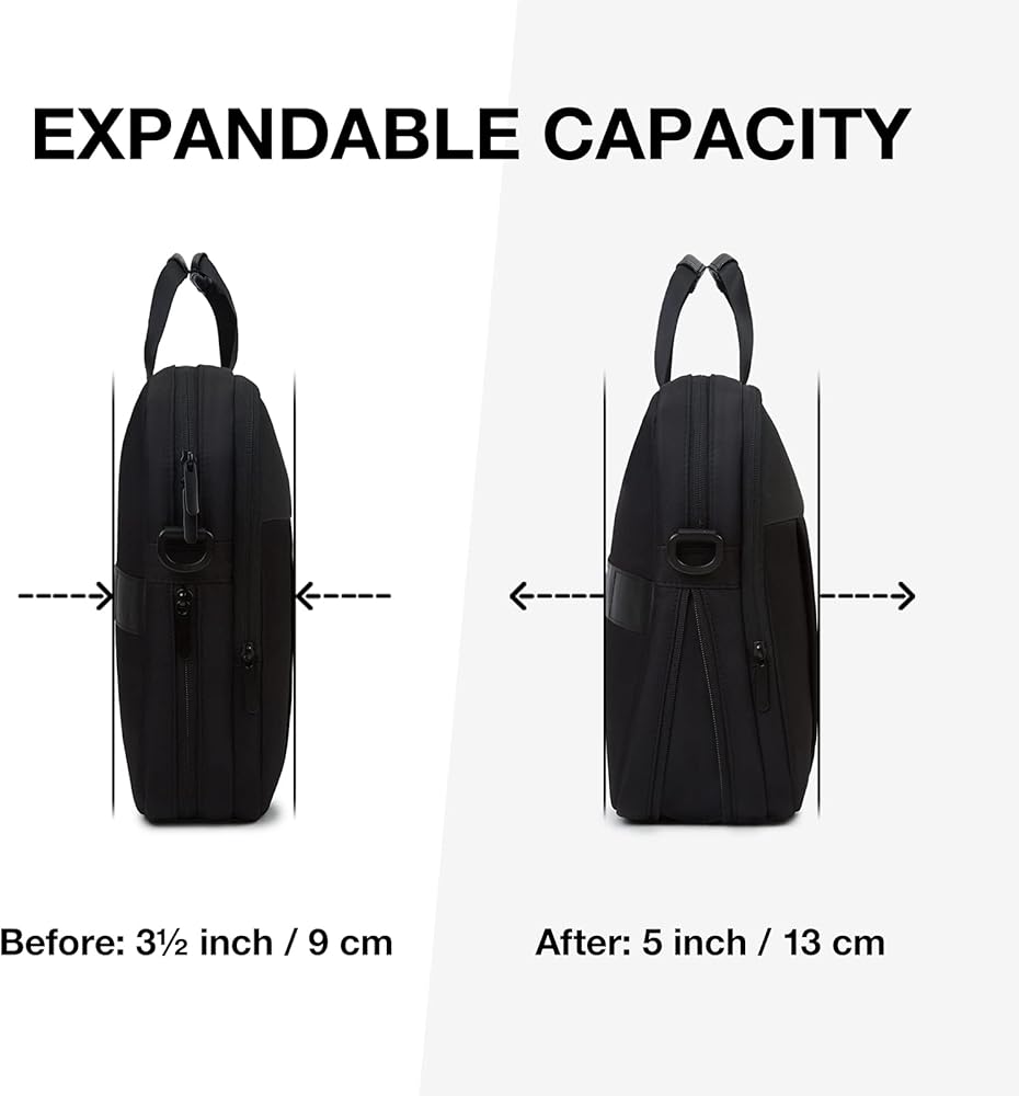 EXPANSION & MULTIPLE COMPARTMENTS- 17.1"L x 6.5''(up to 8.7'') W x 13"H; weight: 2.31 lbs. The expansion zipper of briefcase makes it more flexible, the laptop briefcase can be transformed as a duffel bag whenever you need.