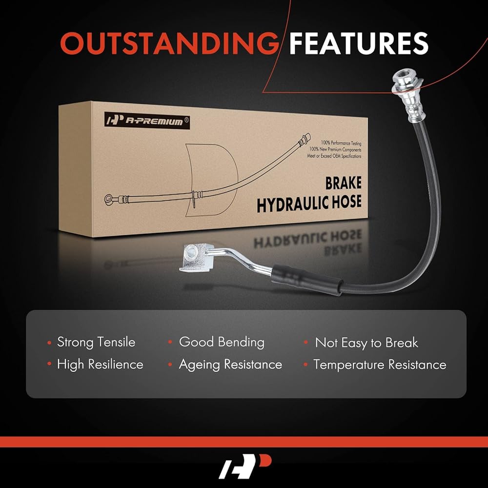 [Superior Quality]: A-Premium Brake Hydraulic Oil Hose consists of EPDM rubber and stainless steel fittings, meeting DOT certification standards, Federal Motor Vehicle Safety Standards(FMVSS 106) and SAE J1401 Standards. Premium craftsmanship and materials ensure superior quality and durability, and excellent performance enhances the whole braking system.