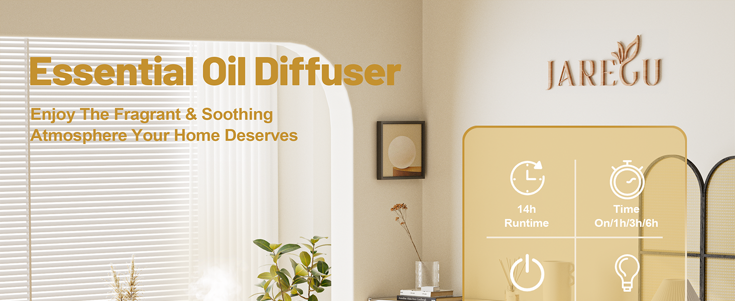 Prolonged Aromatherapy and Humidification: With a capacious 300ml and easy-to-clean water tank, the Jaregu oil diffuser can run for up to 16 hours (9-12h for strong mist and 14-16h for weak) without the need for mid-session refills, to elevate your sensory experience from the moment you wake for the day to the last few minutes before you drift off to sleep at night.
