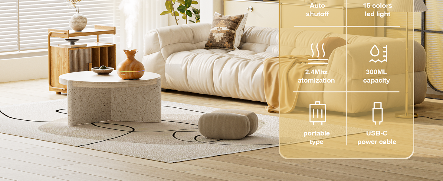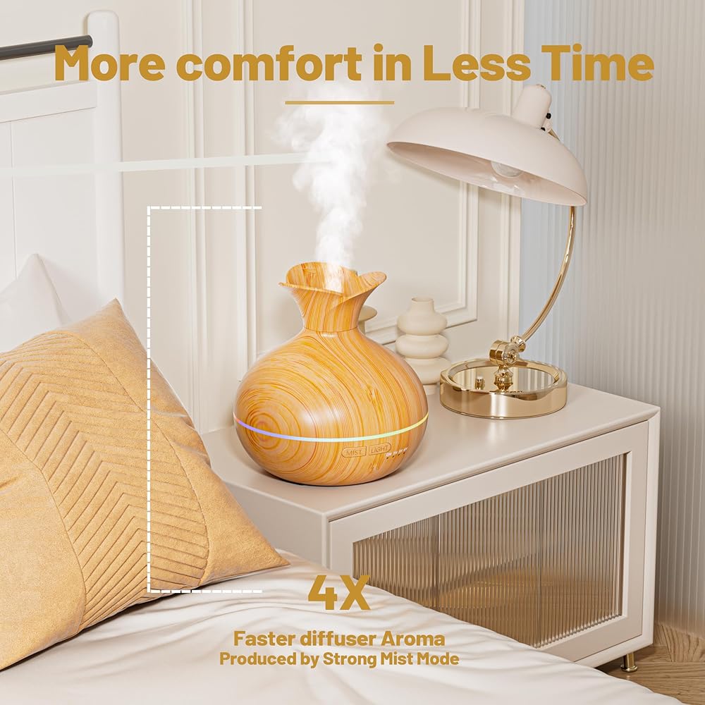2.0 Ultrasound Mist Flow: Essential Oil Diffusers for Home Thanks to advanced ultrasonic technology, the diffuser delivers a potent upward mist flow—three times stronger than ordinary diffusers. Efficiently humidify the air without affecting your furniture, ensuring uniform atomization of essential oils.