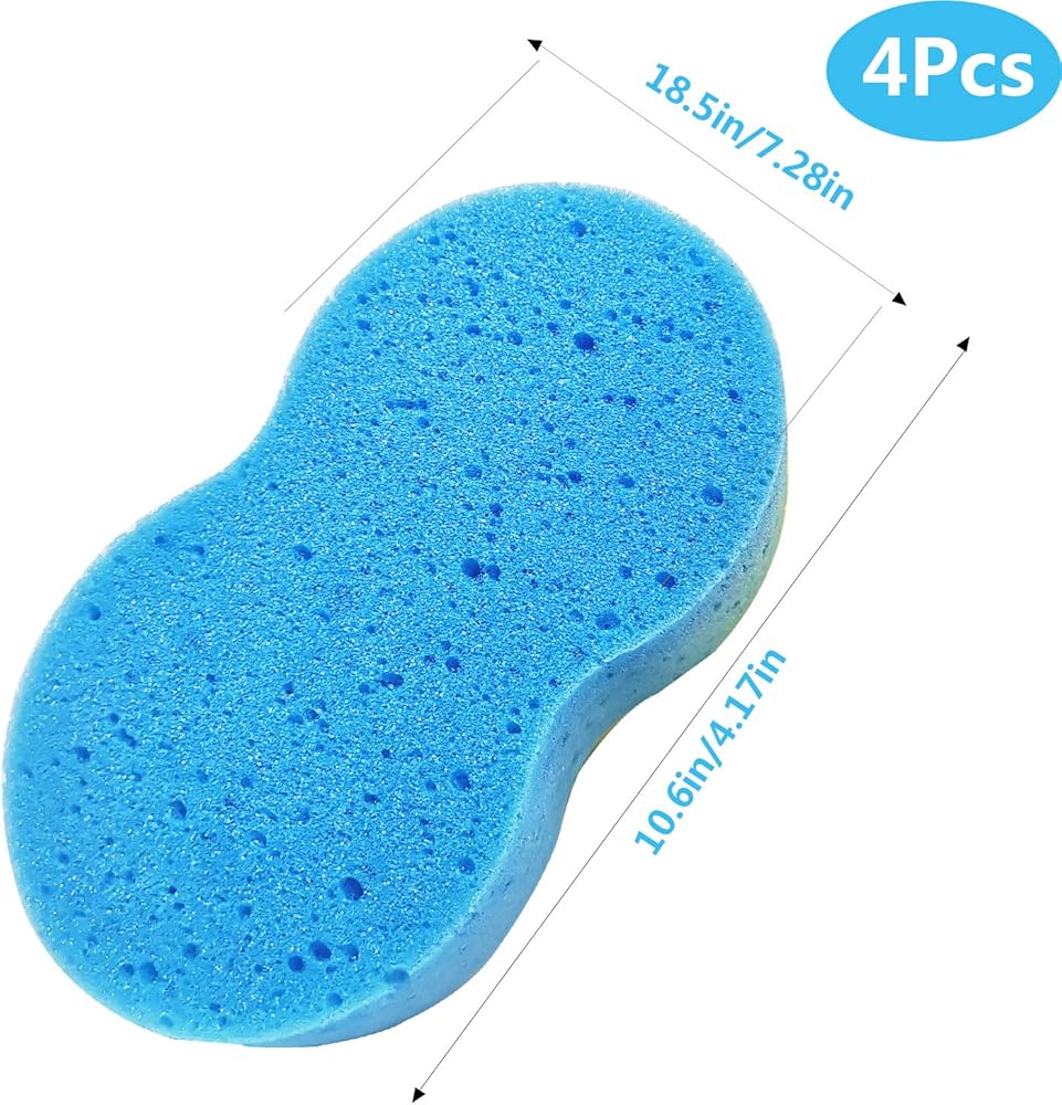 CAR CARE SET4 PACK-Extra large car wash sponge 4 pieces (UFO shape, 2 blue and 2 yellow colors).compressed packaging size, easy to carry and save space.