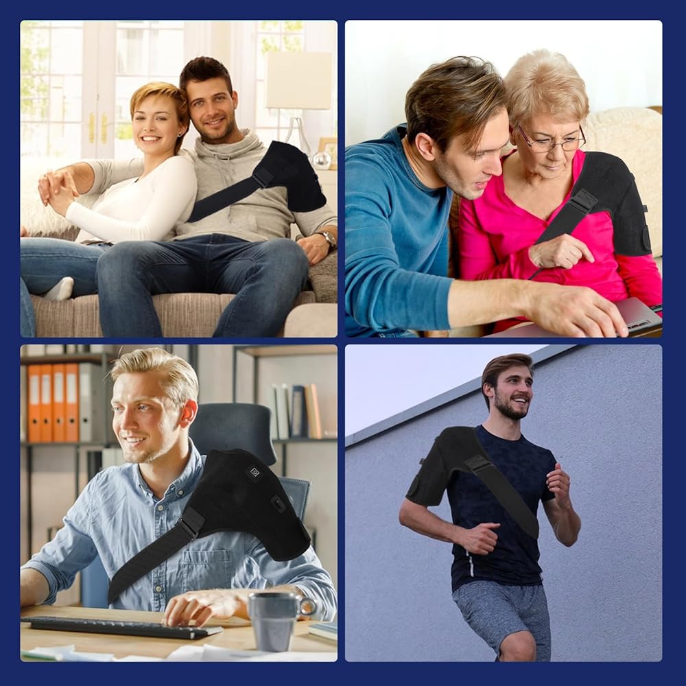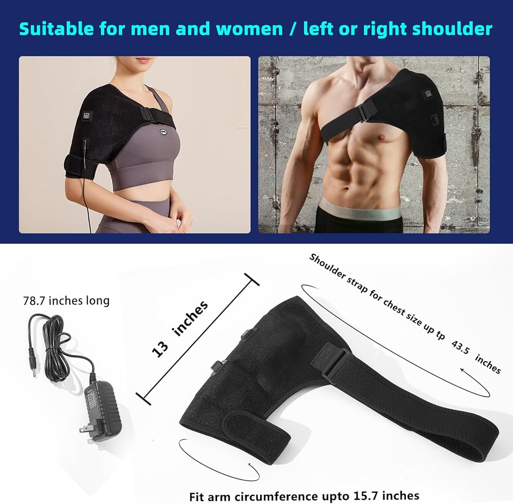 Heated shoulder wrap for men and women,Shoulder straps that can be worn on both left and right shoulders. Adjustable shoulder strap length for any body type.