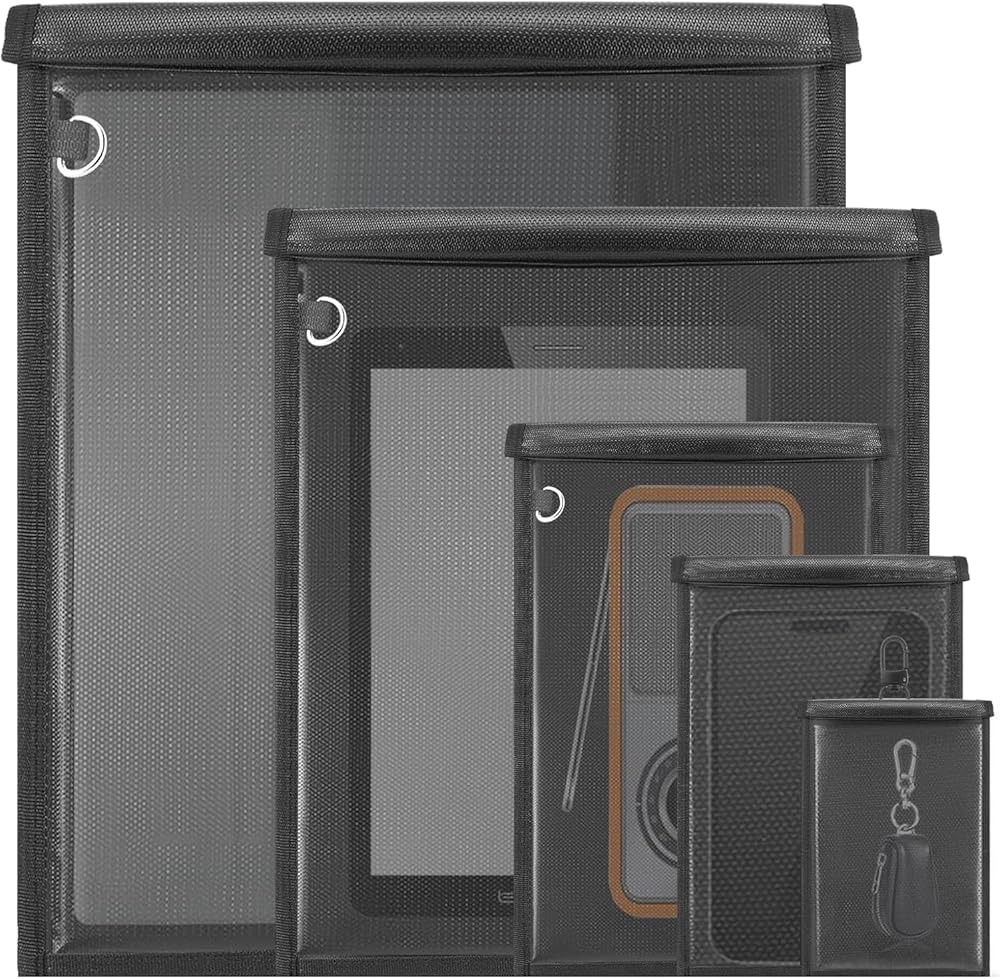 【Fireproof & Water Resistant】Our faraday key fob protector are made of fiberglass cloth that has been coated with a high-tech non-itch silicone that is not only fireproof but also water resistant. Our faraday bags keep your cash, phone, documents, laptop and other property safe in the event of a fire or a rainy day.