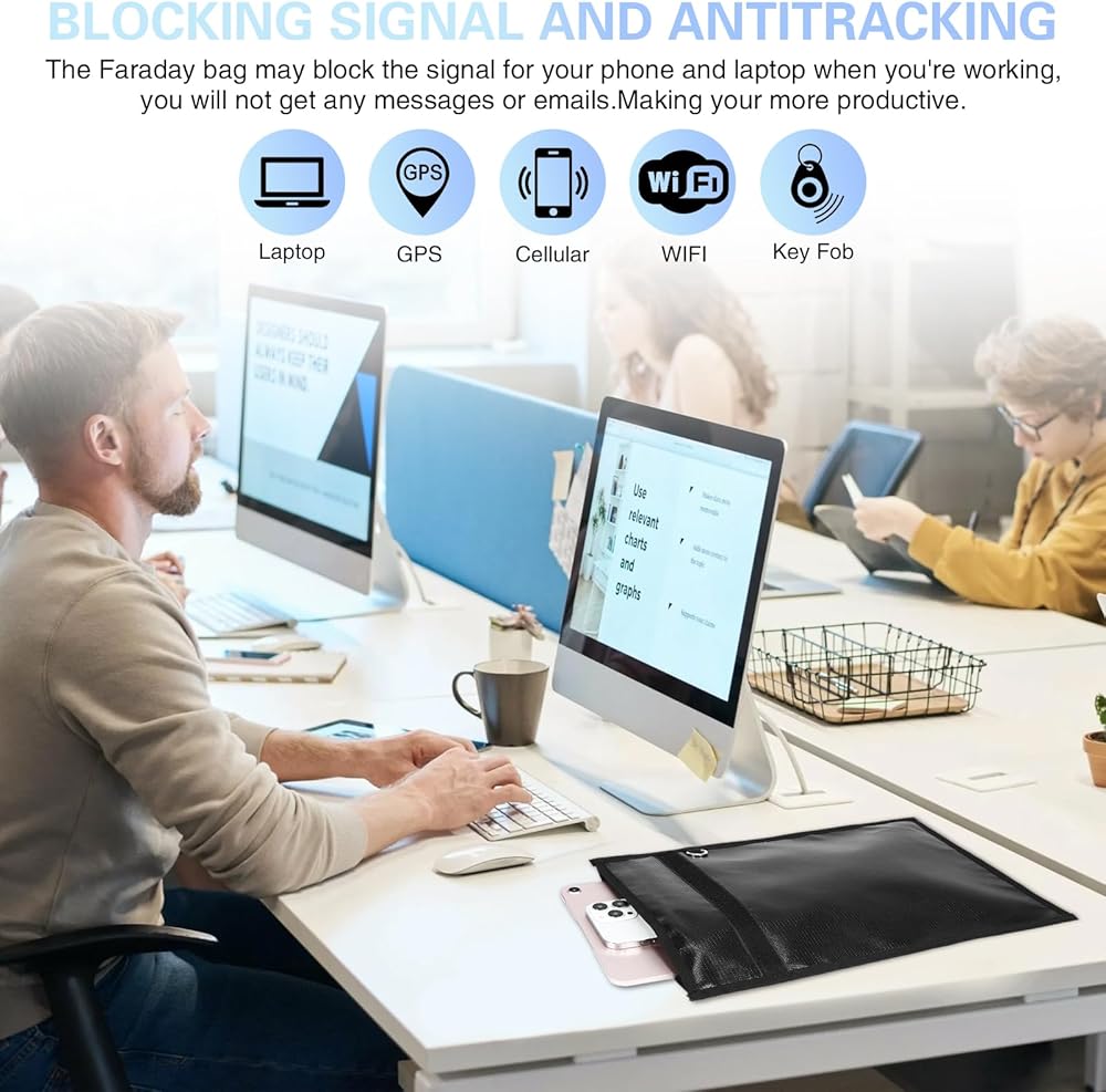 【Super Multi-function Signal Blocker Faraday Bags】No longer have to worry about meetings being disrupted or bugged. Faraday bag is constructed with Top high-quality non-itchy silicone coated fiberglass and super shielding metallic fiber. Our faraday cage block all radio signals ranging from Wi-Fi and Bluetooth to RFID and GPS.