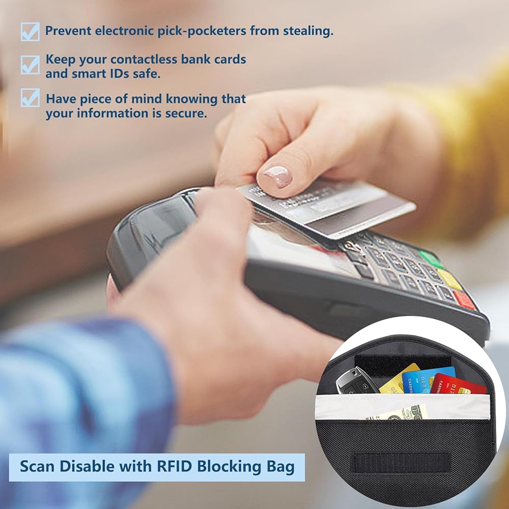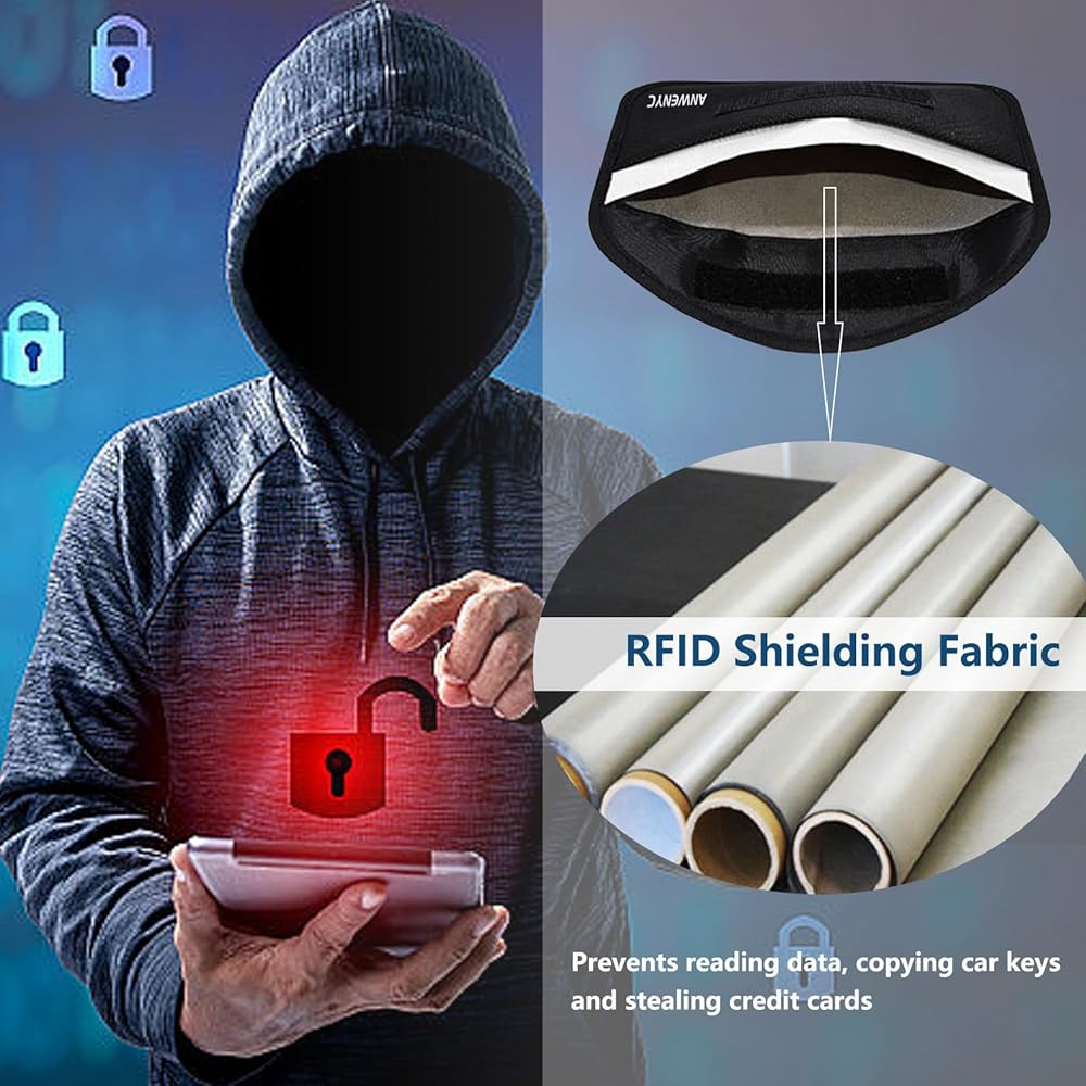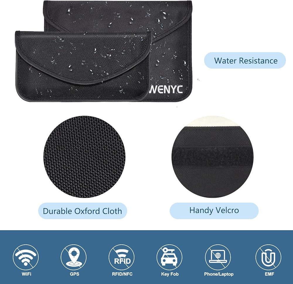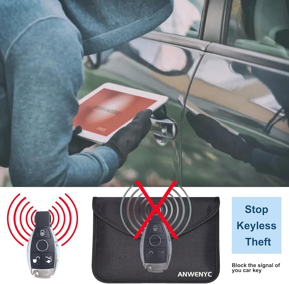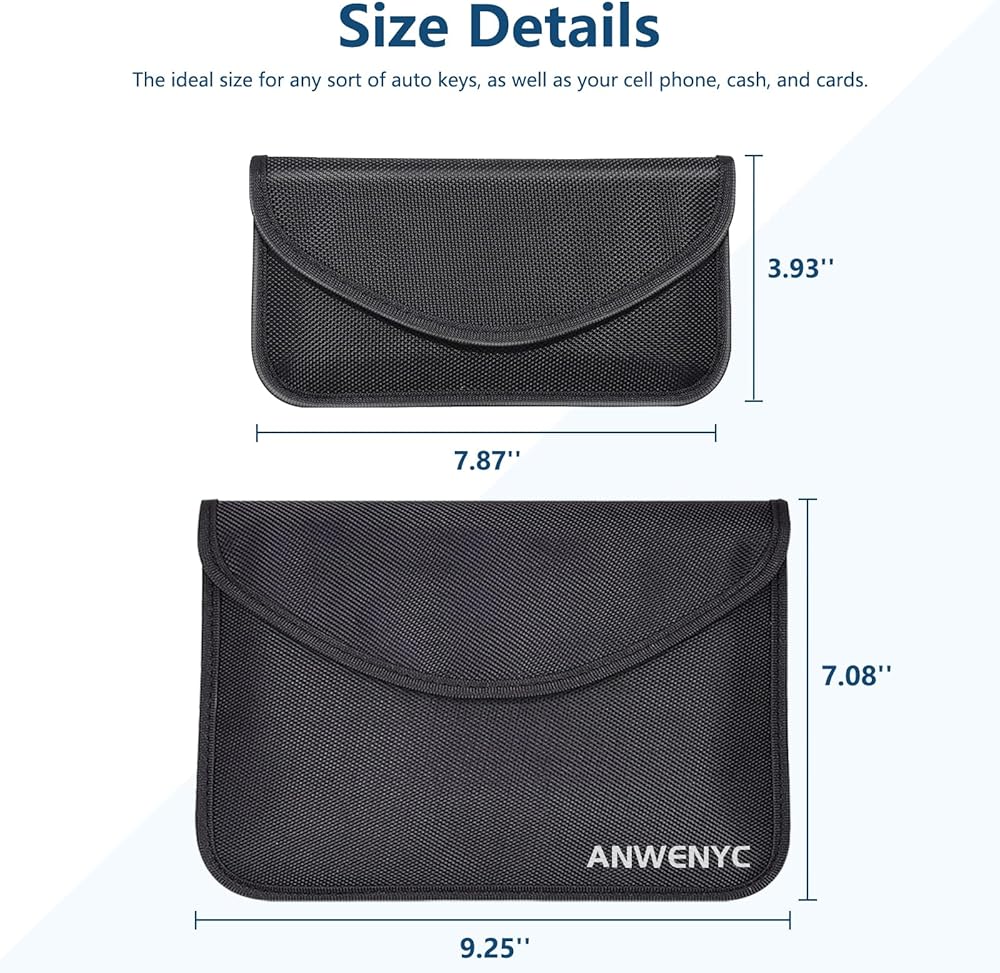 🔒【Portable & Convenient】Our faraday bag for key fob Size: 9.25 x 7.08 IN & 7.87 x 3.93 IN, best for storing car key fobs, ID card, bank cards, cash, etc. You can put your cards/car key in this faraday key fob protector to block all signal, helping to protect your valuables. The small size faraday bags can fit in your bags, convenient to carry around.