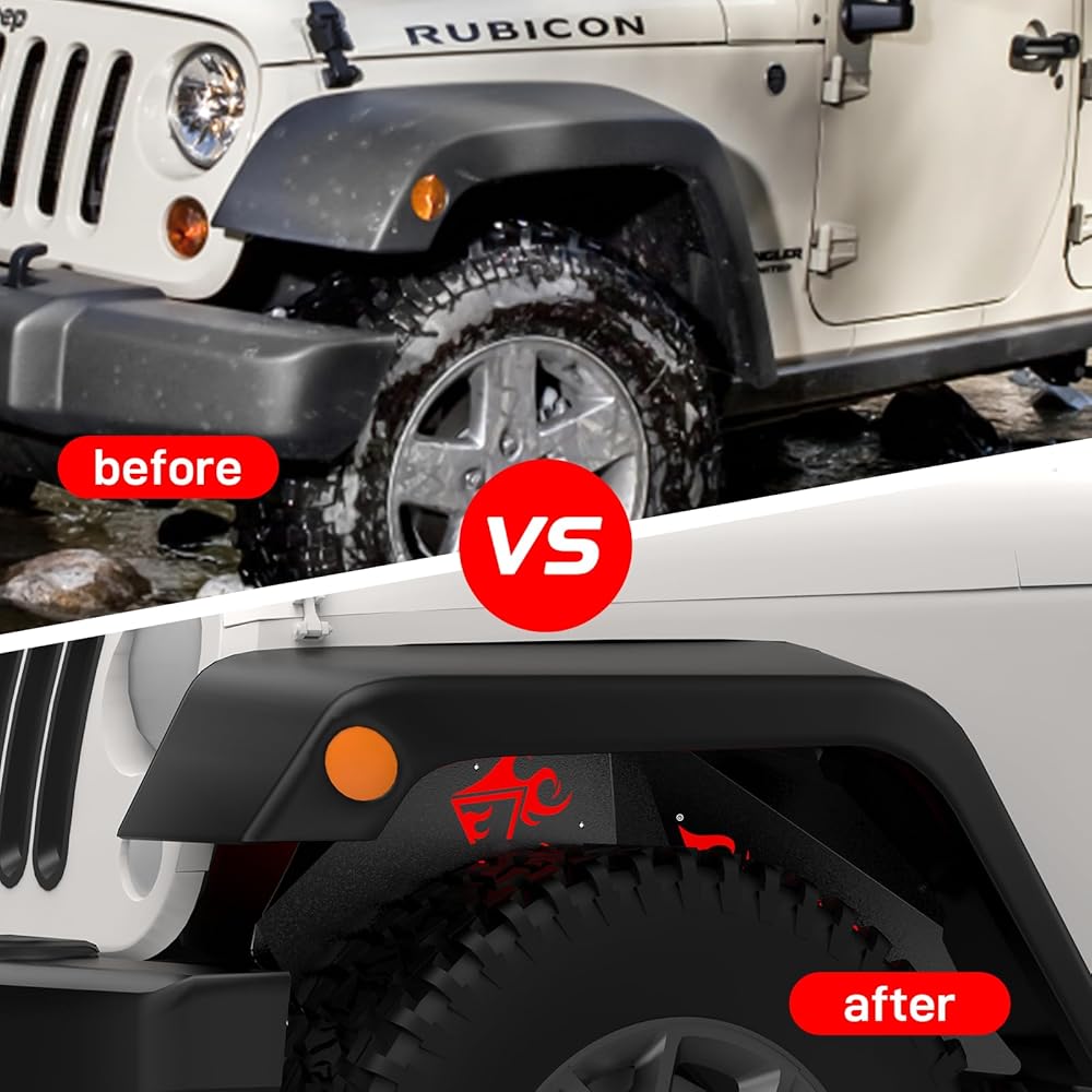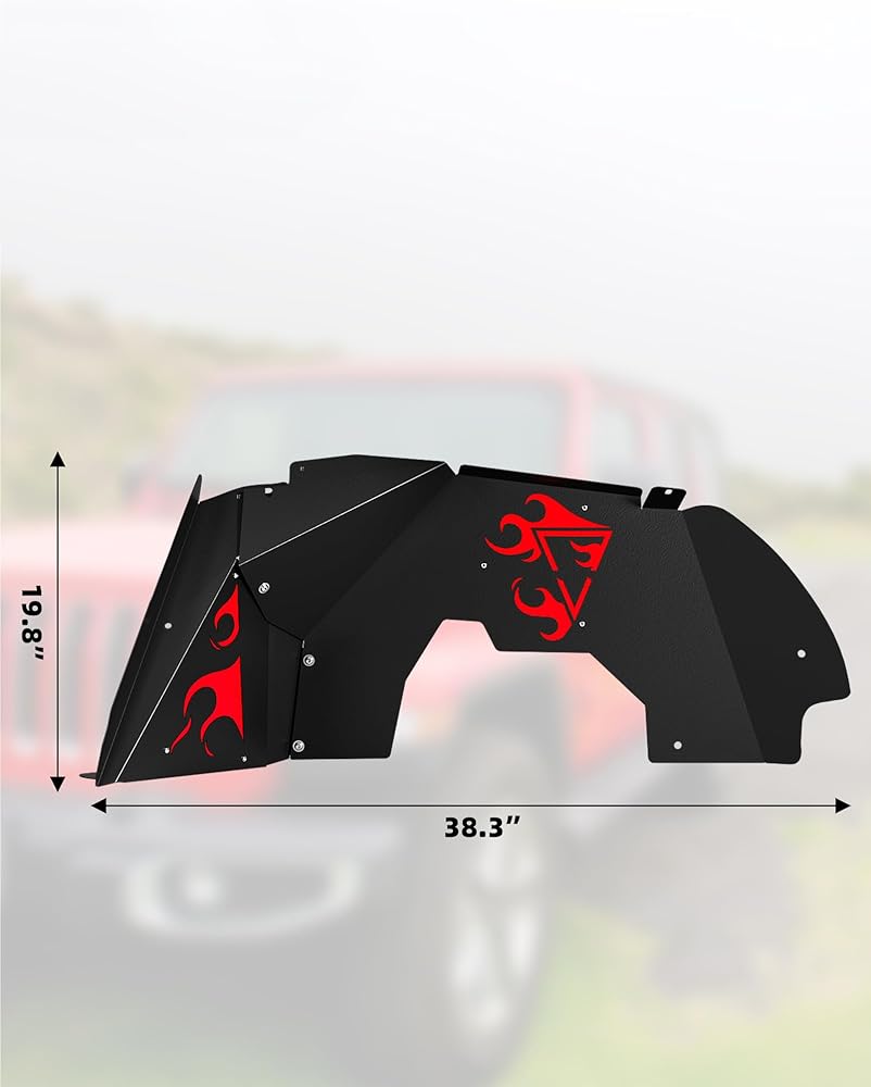 【Solid Construction】:Front inner fenders feature a superior solid steel construction. Durable black powder coating can enhance the corrosion and rust resistance of these inner fenders, making them excellent vehicle engine components. The red flame icon adds style to your vehicle