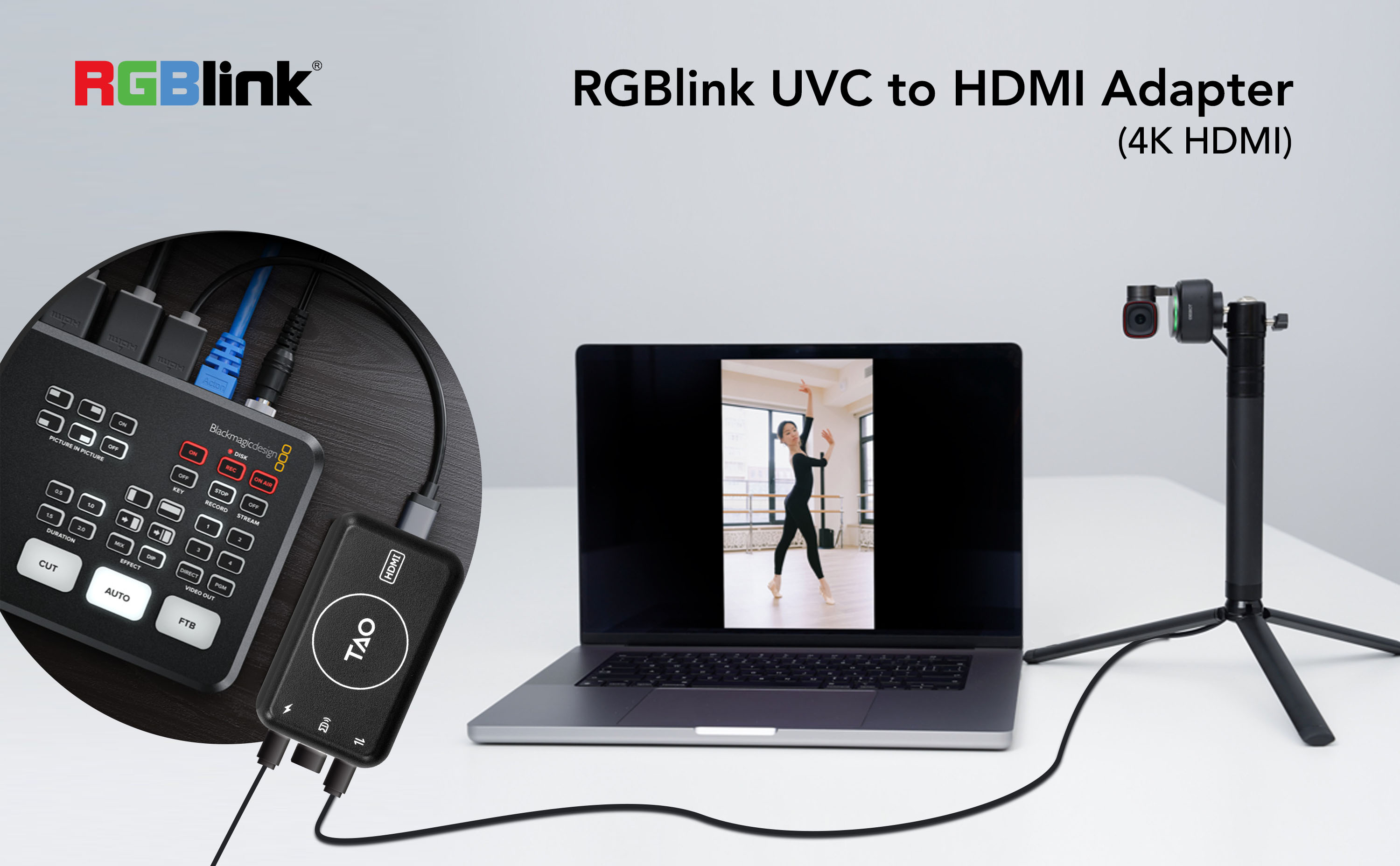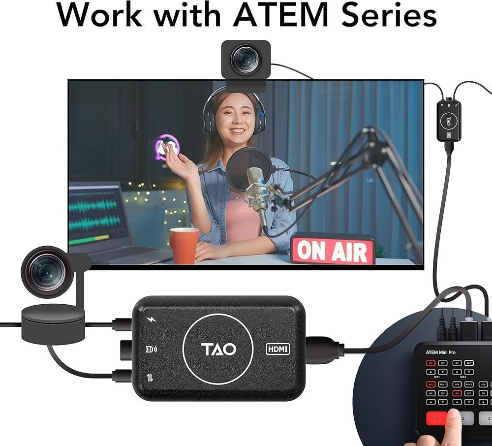 UVC TO HDMI ADAPTER MAGIC - The TAO 1tiny is your ultimate UVC to HDMI converter, compatible with ATEM series and UVC output webcams. Transform your streaming switcher into a powerhouse and experience the magic of superior visual performance. The bundle is equipped with a dedicated adapter, which solves the problem that the product cannot be used due to screen freezing.
