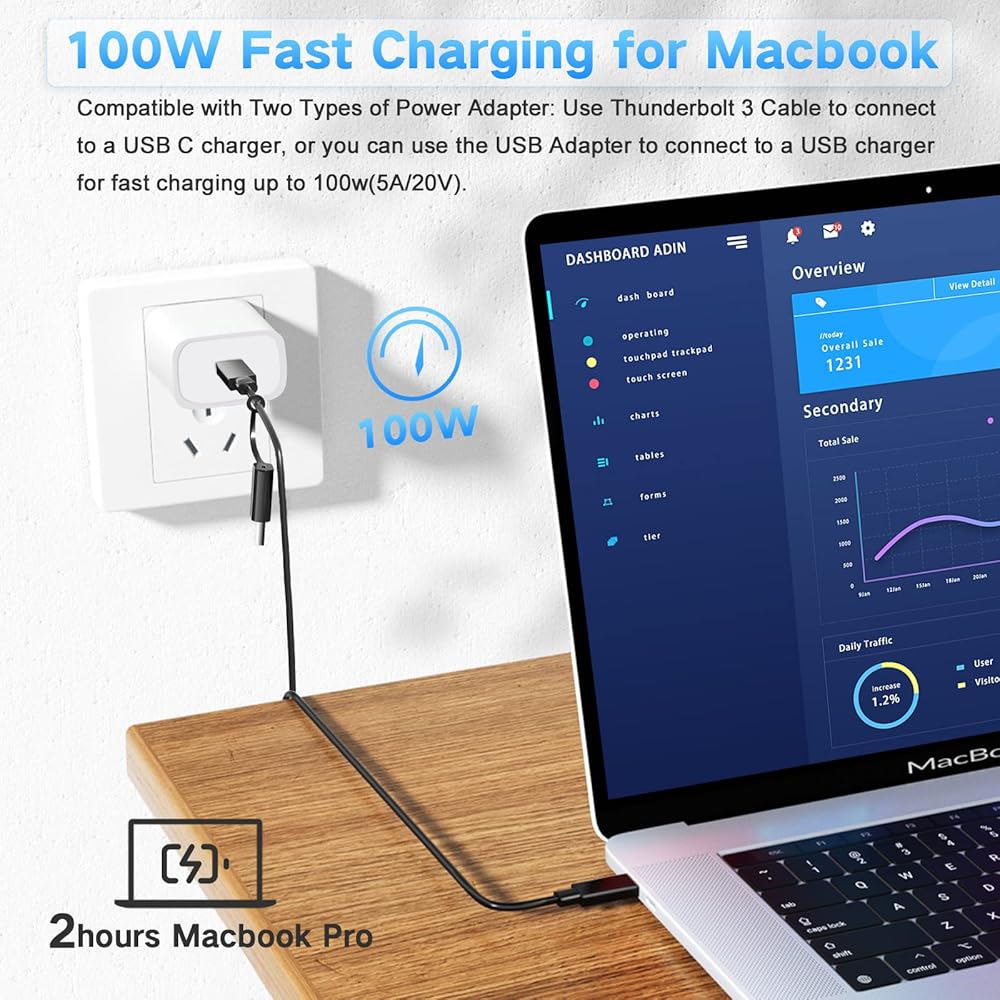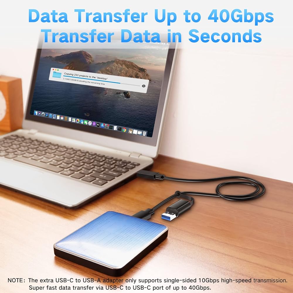 【100w & 40Gbps】USB4.0 cable compatible with Thunderbolt 4 / 3, and USB 3.2, supports 100wThunderbolt charge and 40Gbps speed for data transfer. 5GB file transferred in one second, it's ideal for pictures, video, and other large documents.