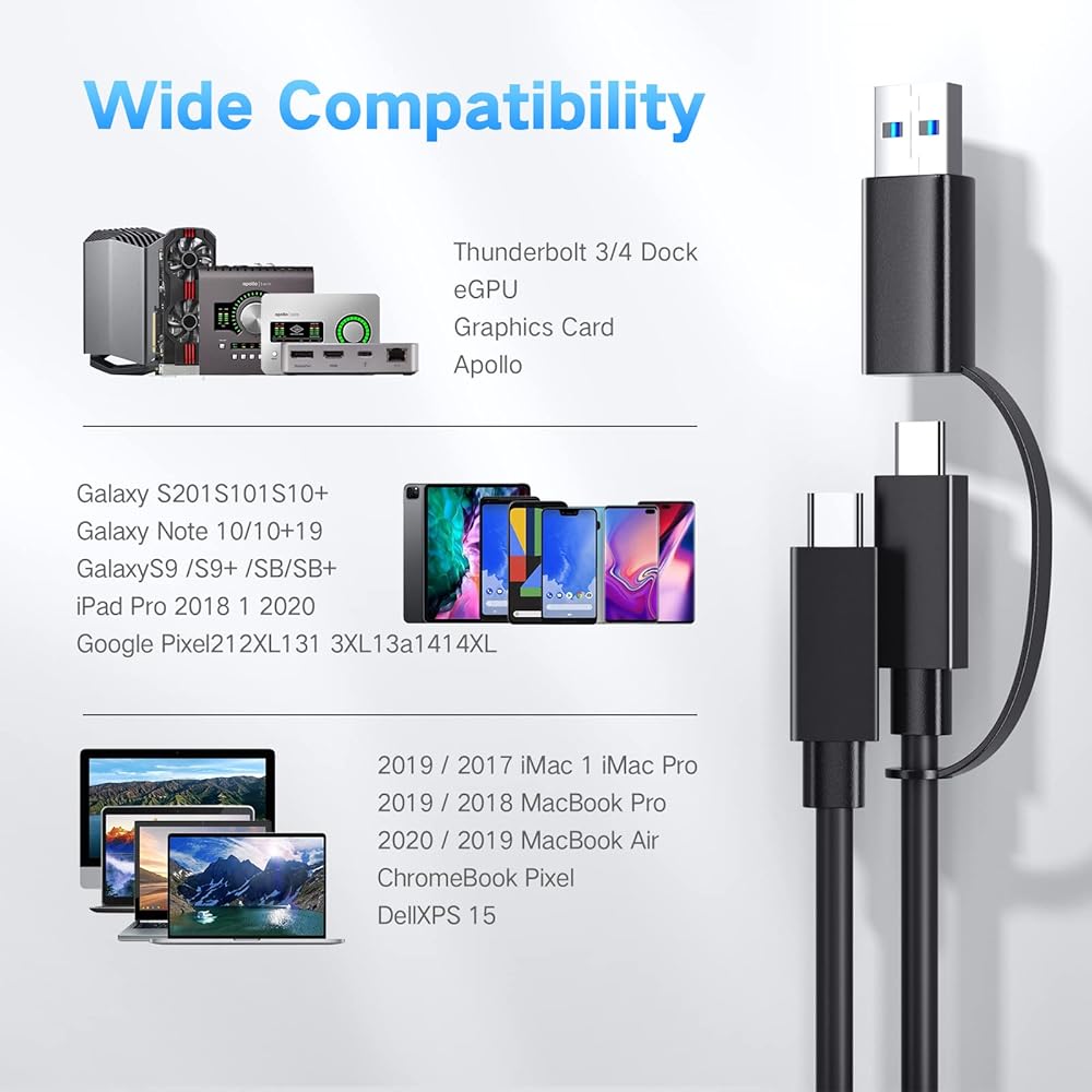 【Wide Compatibility】 Compatible with devices with Thunderbolt 4/ 3 / USB-C port, like DELL monitor, External SSD, Docks, eGPU, Razer, Mac mini, and Laptops including MacBook Pro. NOTE: Please note that the length and height of this thunderbolt ends are 10.26mm and 6.41mm. The hole of USB-C on your phone case should be longer and higher than those.
