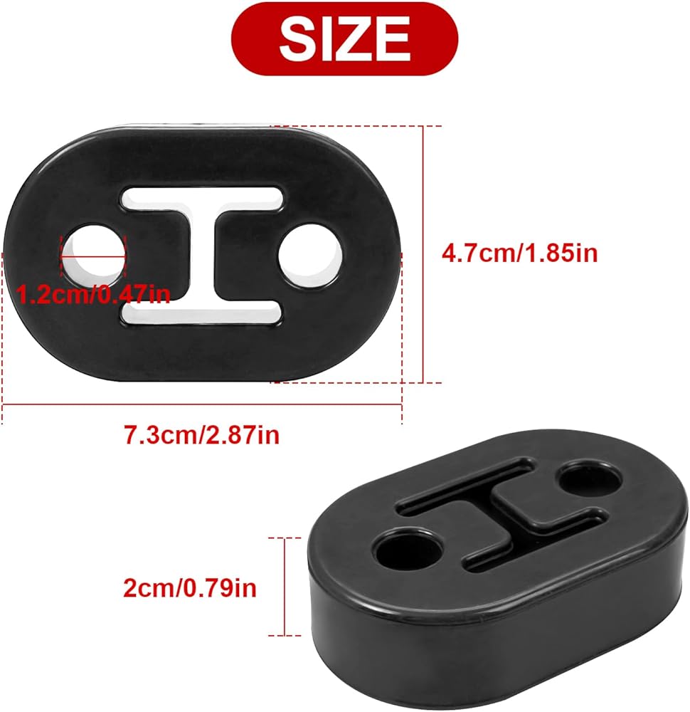 Dimensions - Approximately 4-1/2" x 1-1/2" x 1-3/4". Directly replacement for aged damaged Hangers and replace pipes mufflers. TIPS: Add a little grease/lube on the hangers when removing old and installing new will make it much easier. Perfect fit.