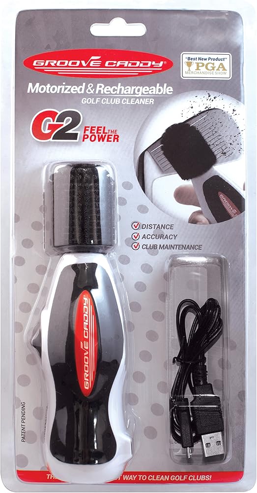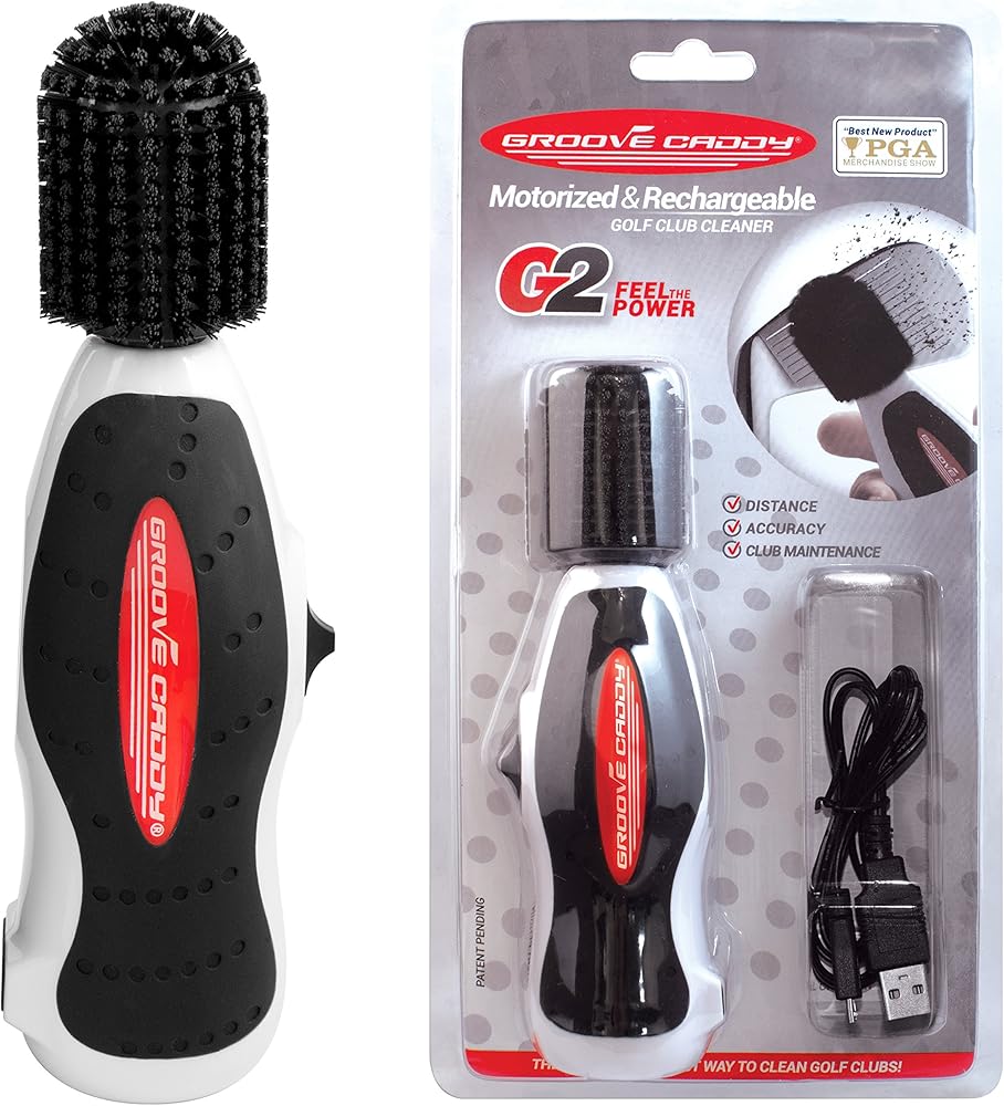 The Groove Caddy G2 is the NEW, innovative way for golfers to clean their golf clubs. It is hand-held, has a 1,120 RPM motor, a 1400 MAH rechargeable lithium-ion battery and custom, non-abrasive nylon bristles. It can be used before, during and after a round of golf or practice session. The Groove Caddy is a revolutionary product and over 10,000 customers agree it is "the easiest and fastest way to clean golf clubs"! By digging and cleaning deep into the golf club grooves, the Groove Caddy will maximize golf club performance and maintenance. The Groove Caddy is engineered to polish the grooves of the golf club more effectively and quickly than a manual brush or towel - no more manual scrubbing. The Groove Caddy also makes the perfect gift for the golfer! Groove Caddy was awarded the 'Best New Product' at the Annual PGA Merchandise Show held in Orlando, Florida. It is the largest, most prestigious Golf Show in the world.