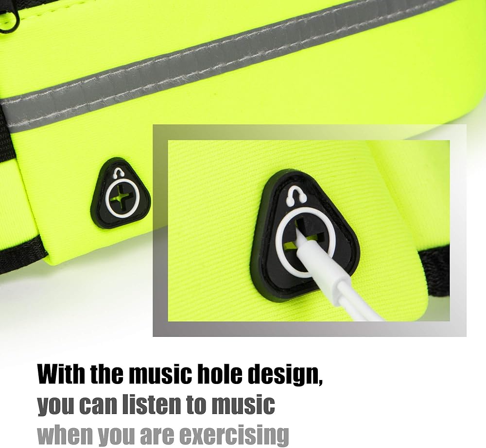 Large Capacity & Reflective Strip:Carries large phones up to 6 inches, passport, bottle of water, power bank, smartphones, keys,ID and other personal items. Designed with reflector for safety and visibility when you jog at night.The 3M reflective stripe in the front pocket is specially designed for triathlons and marathons