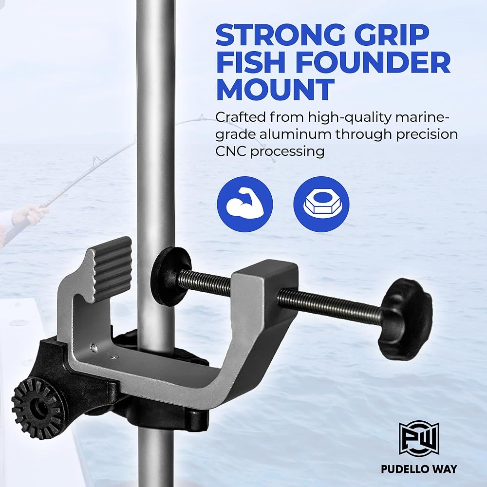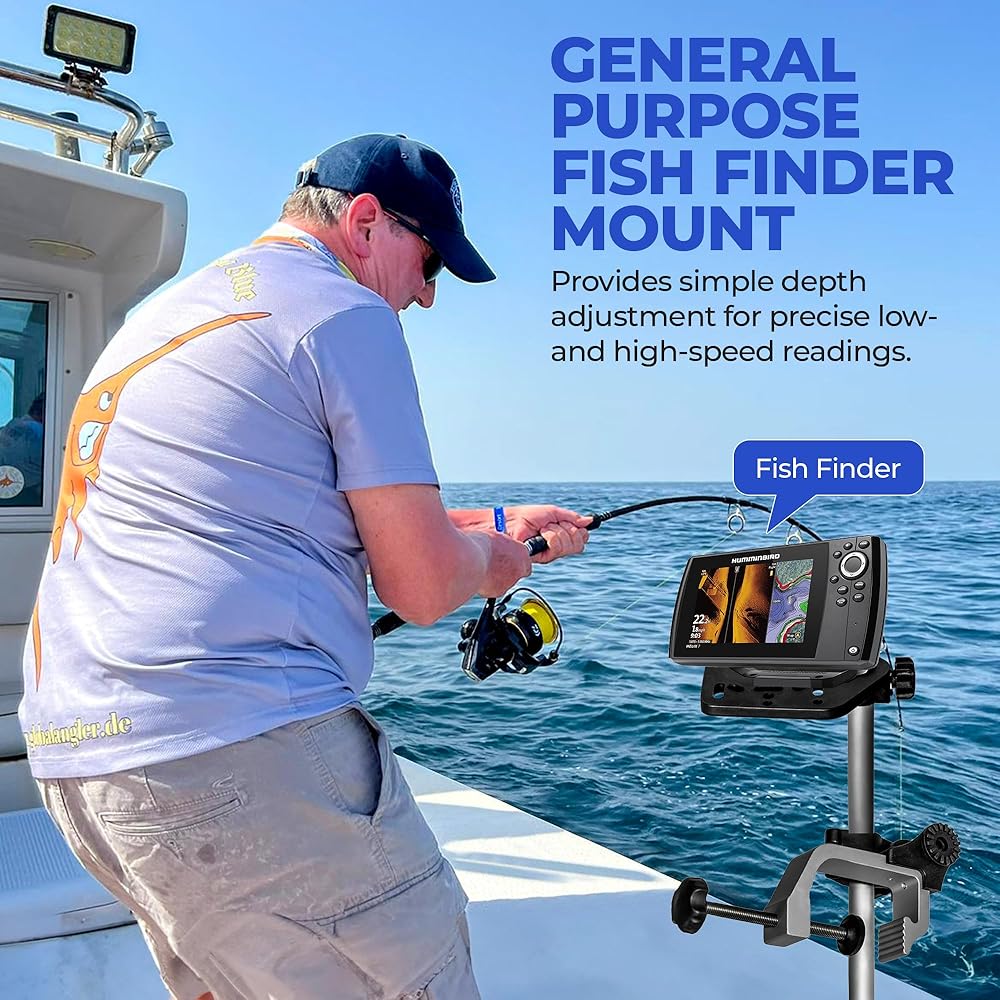 EASY INSTALLATION: Boasting a maximum clamp opening of 2-3/4 inches, our fishfinder mount accommodates varying sizes, providing a secure and snug fit for your transducer, ensuring peace of mind during your fishing excursions. Mounts to the front of the pontoon for best results, but can be fitted on the rear of the boat as well. Installs and removes quickly and easily.