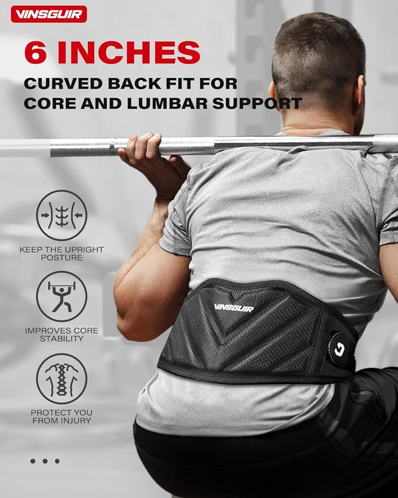 Comfort & Ergonomics Redefined: Crafted with high-strength EVA and layered with mesh fabric, the Vinsguir training belt sets new standards in comfort and breathability. Its ergonomic 6-inch width delivers optimal compression, providing unparalleled support for your core, glutes, back, and abs during squats, cleans, lunges, deadlifts, rows, and more.