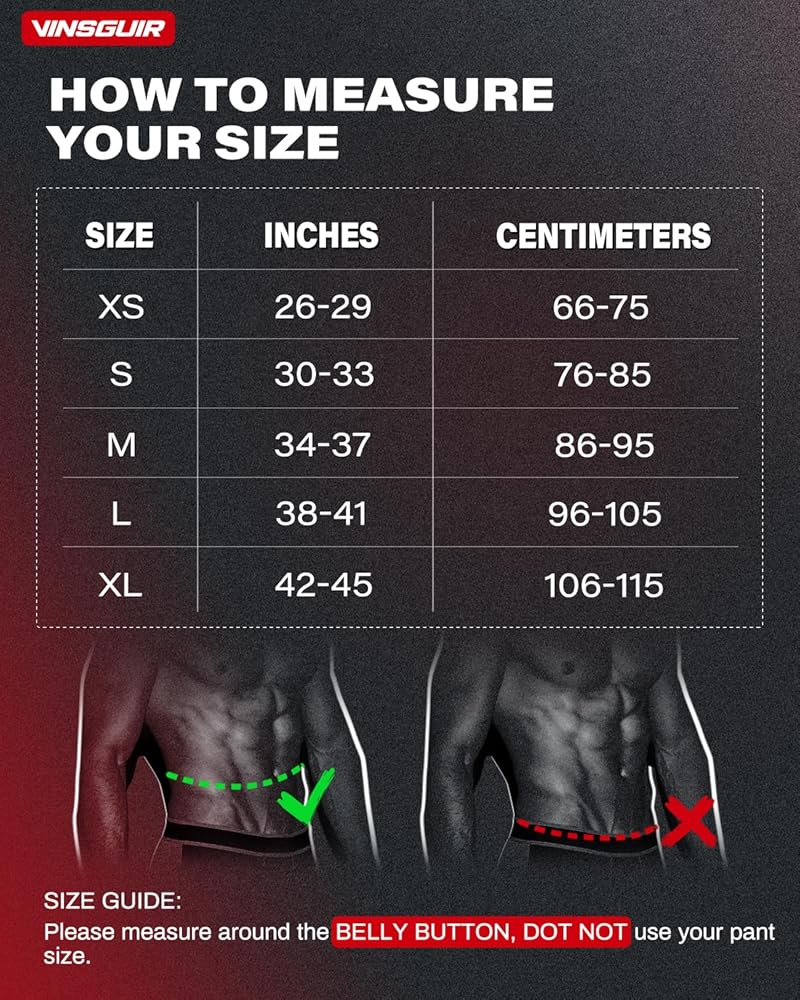 Versatile Sizing Options: Available in 5 sizes – XS, S, M, L, XL – our Vinsguir weightlifting belt caters to everyone, from beginners to advanced lifters, and both men and women. Refer to the sizing chart in the images to find your ideal fit, measuring your waist size around the belly button, do not use your pant size. Opt for a slightly larger size if you fall in between measurements.