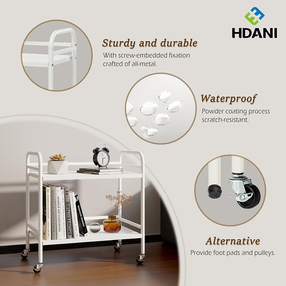 [Multifunctional Storage] This versatile product doubles as both a cart and a bookshelf, with a sturdy metal structure and 2-tier open shelf design for extra storage.