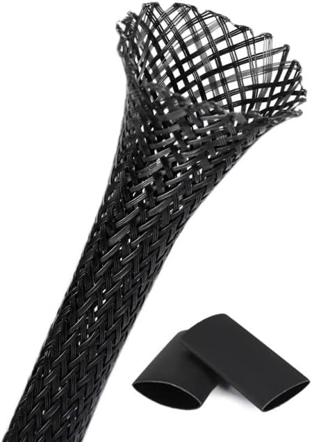 Wire Sleeves - 1/4inch & 1/2inch PET expandable braided sleeve to Secure your cable messy. wire sleeving dimensions: Diameter: 1/4"&1/2" | Length: 25 Feet | Color:Black| Large Diameter| 200% 1/4"&1/2" industrial grade automotive wire loom